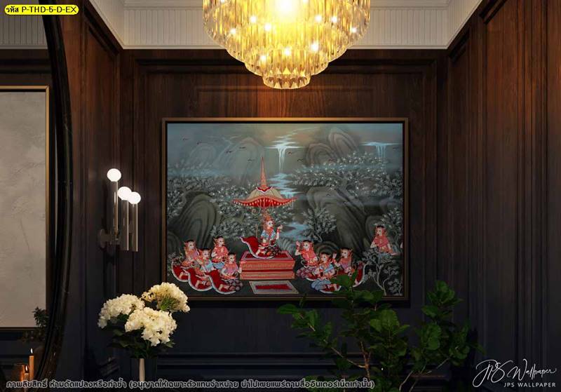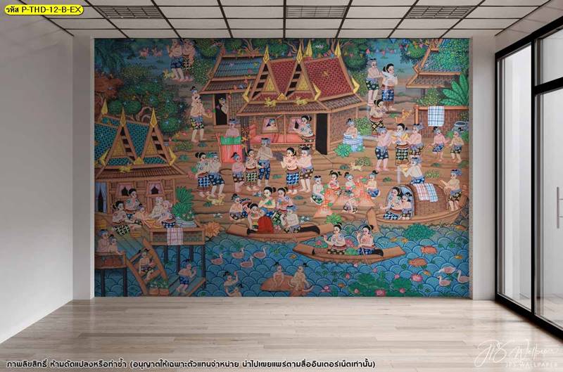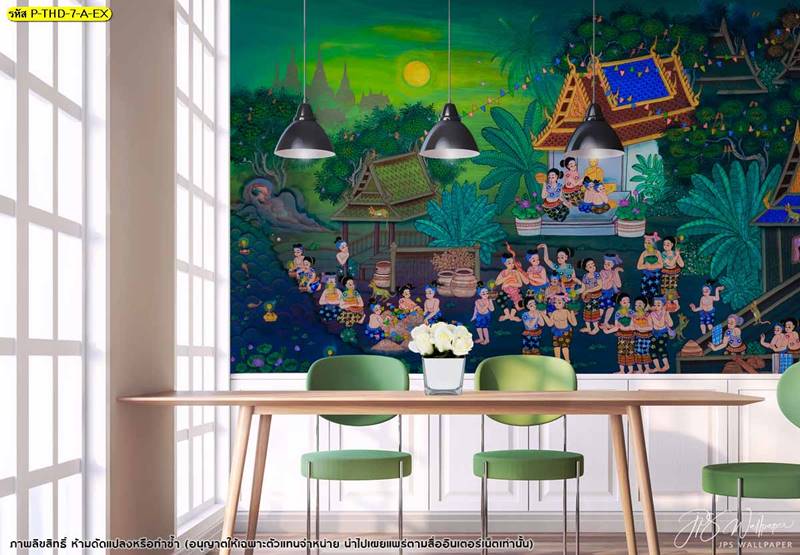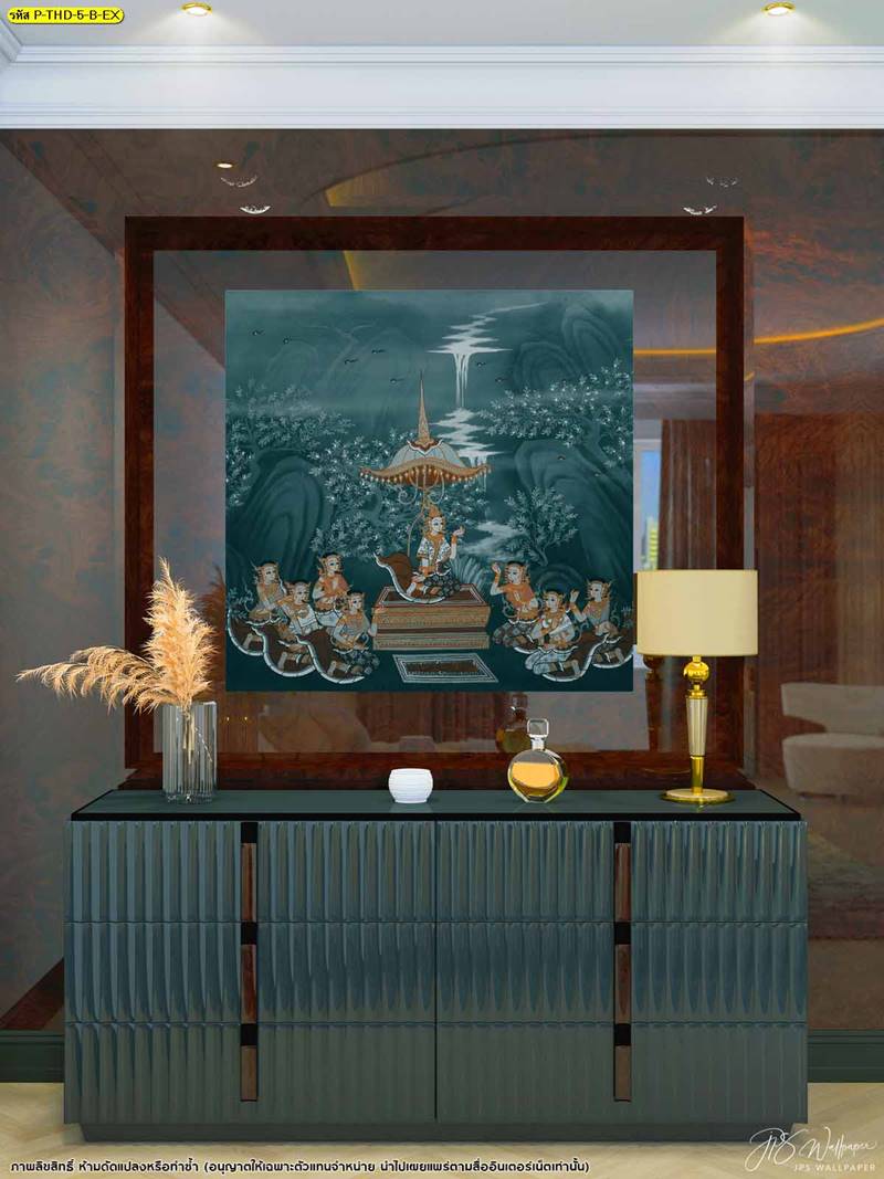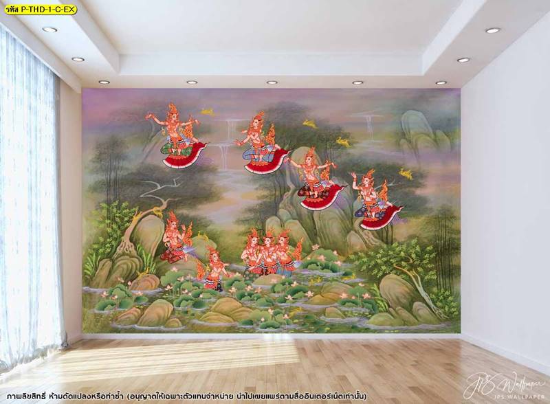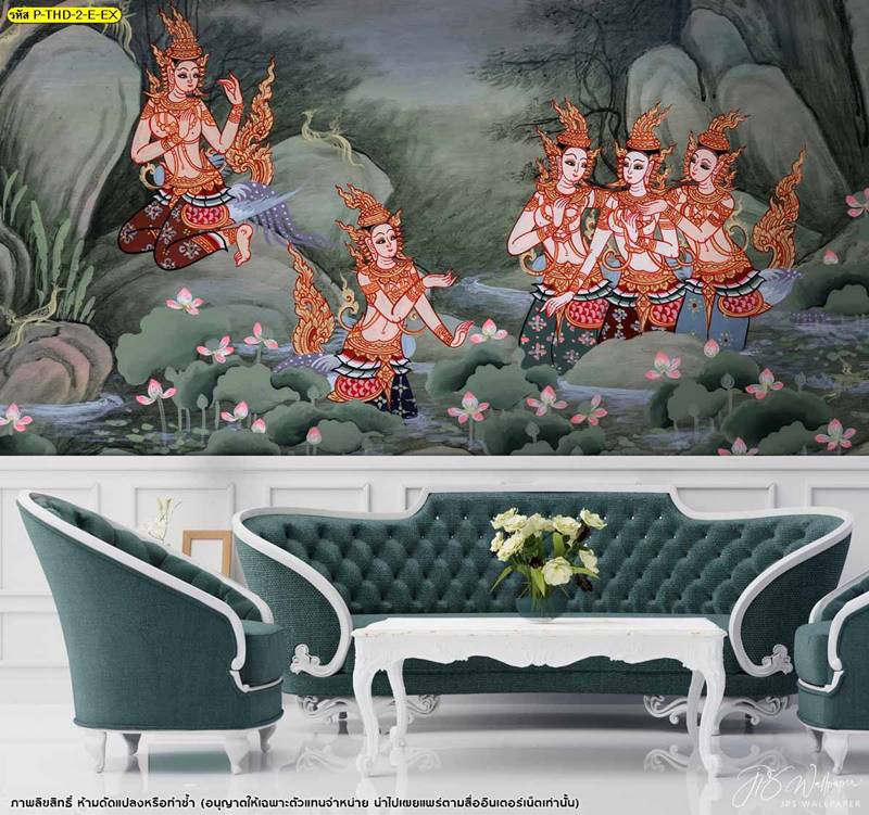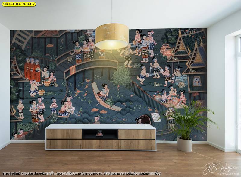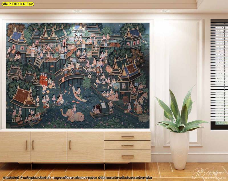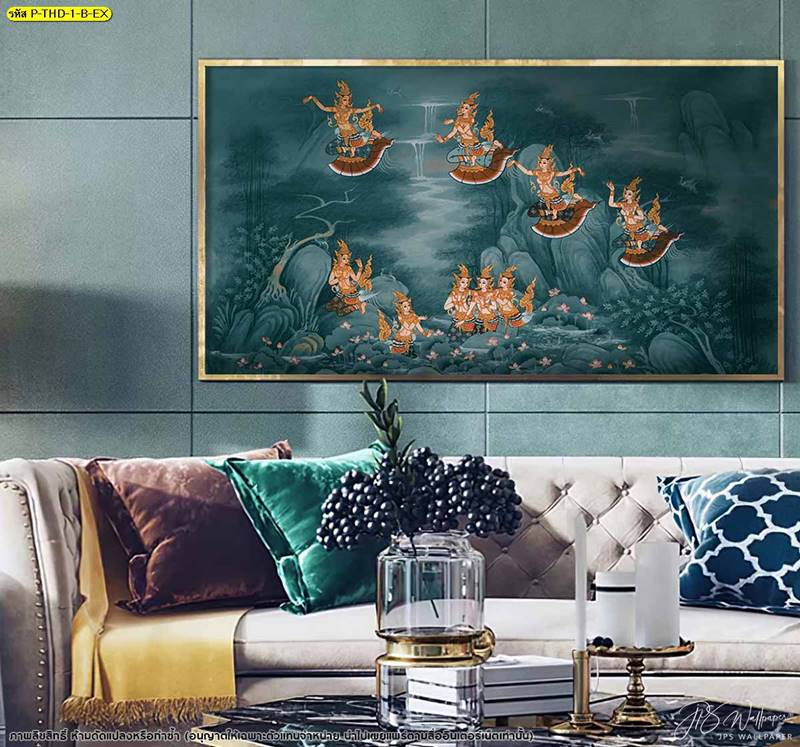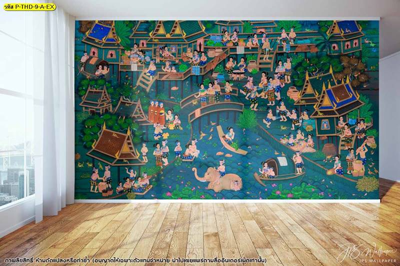 วอลเปเปอร์ติดผนัง, ลายสงกานต์, ตกแต่งห้องนั่งเล่น, ภาพพิมพ์ลายสงกานต์, สงกานต์, ภาพติดผนัง, วอลเปเปอร์ลายไทย, ลายลิขสิทธิ์, ลายไทย, จิตกรรมฝาผนัง,…