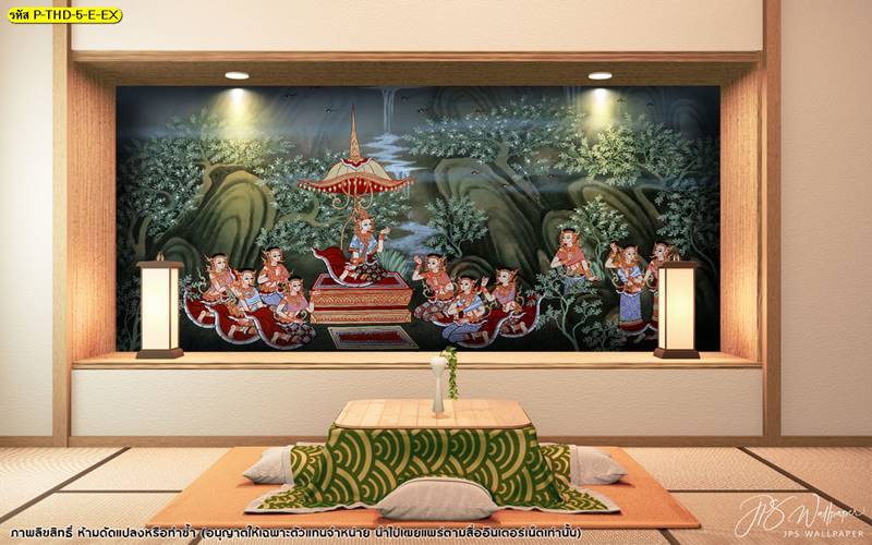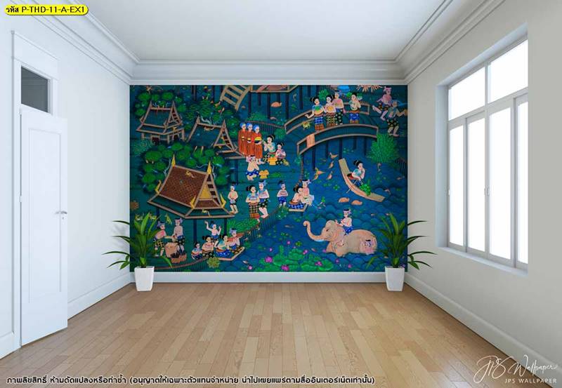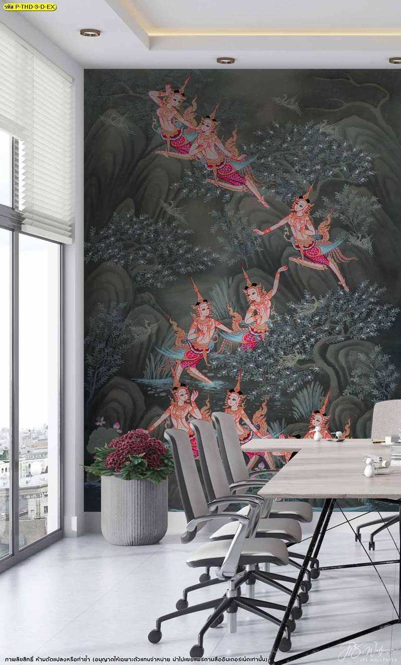 วอลเปเปอร์สั่งพิมพ์ภาพจิตรกรรมไทยลายเส้นลิขสิทธิ์