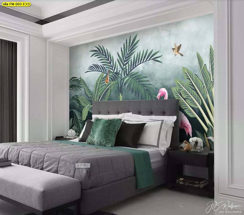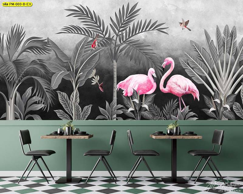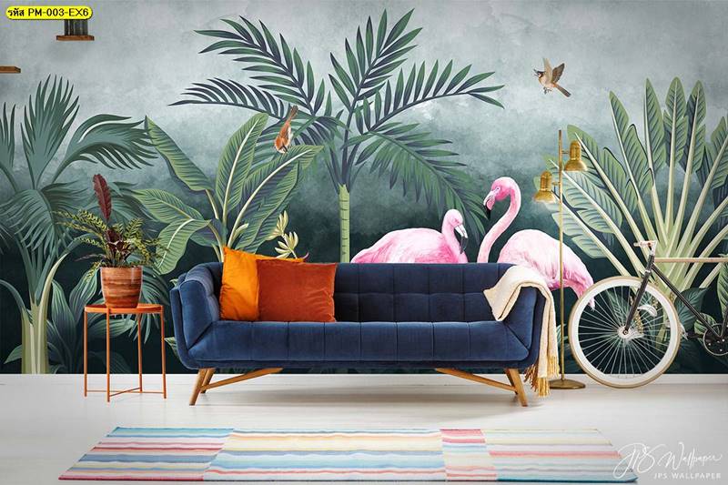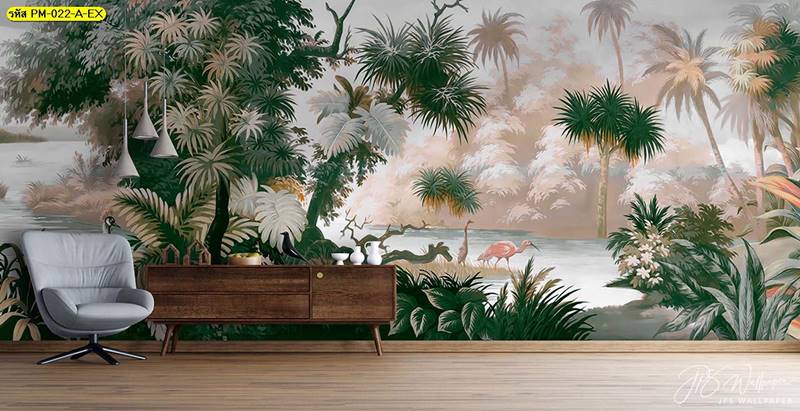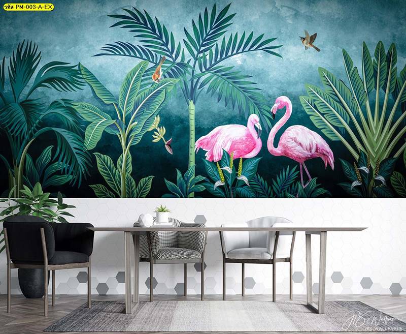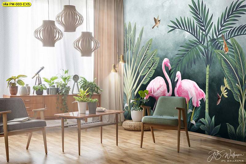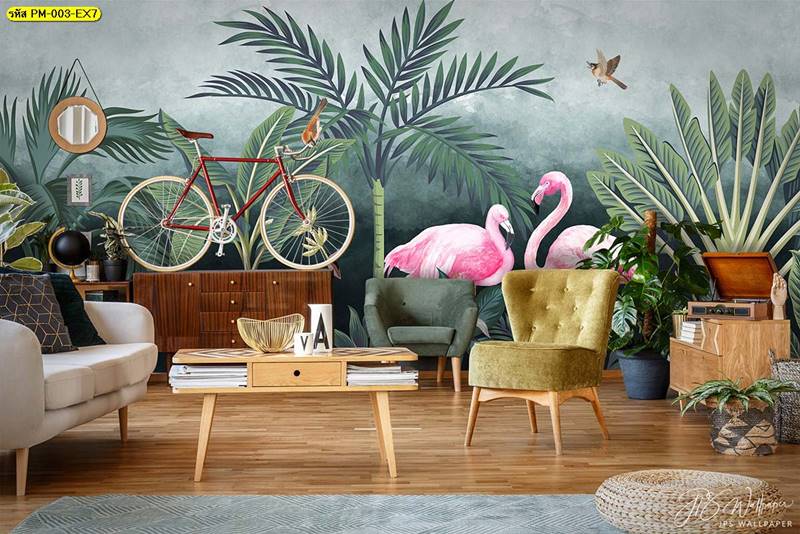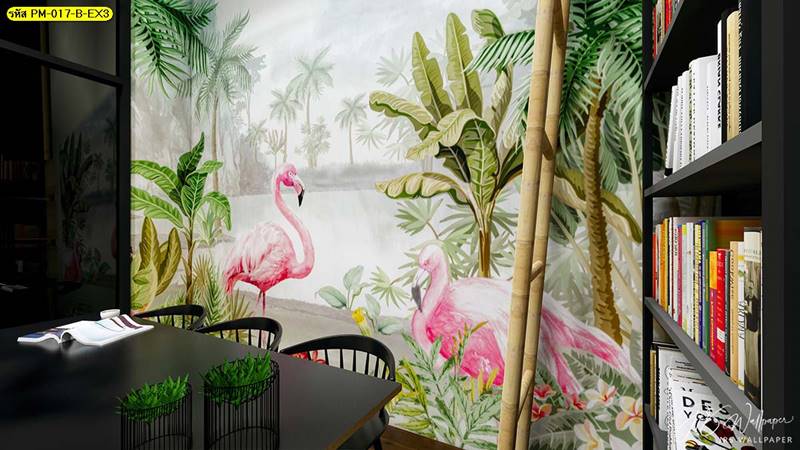 วอลเปเปอร์ติดผนัง ลายสวนป่า ตกแต่งห้องนั่งเล่น ภาพพิมพ์สวนป่า วอลเปเปอร์ติดห้องนอน วอลเปเปอร์ห้องสวยๆ วอลเปเปอร์สวนป่า ภาพติดผนัง แต่งห้องนอน แต่งห้องนั่งเล่น แต่งห้องรับแขก นกฟลามิงโก ป่าไม้ ลายเสือ ลายสัตว์