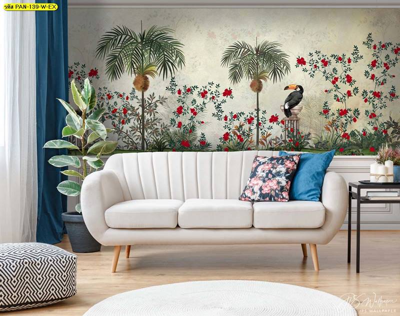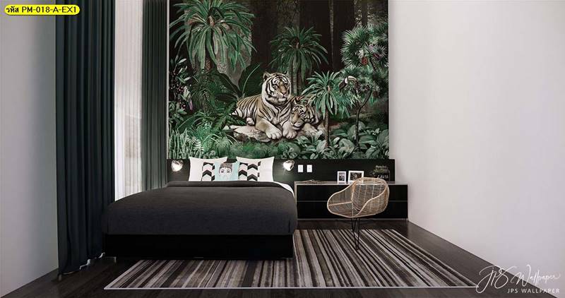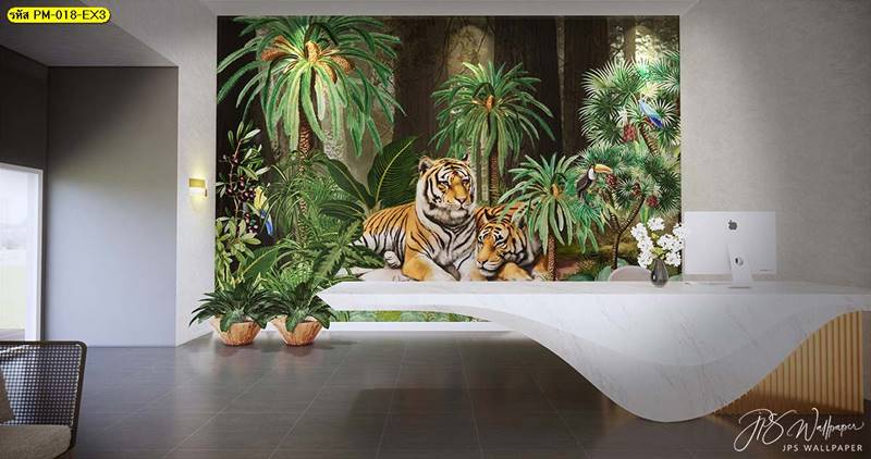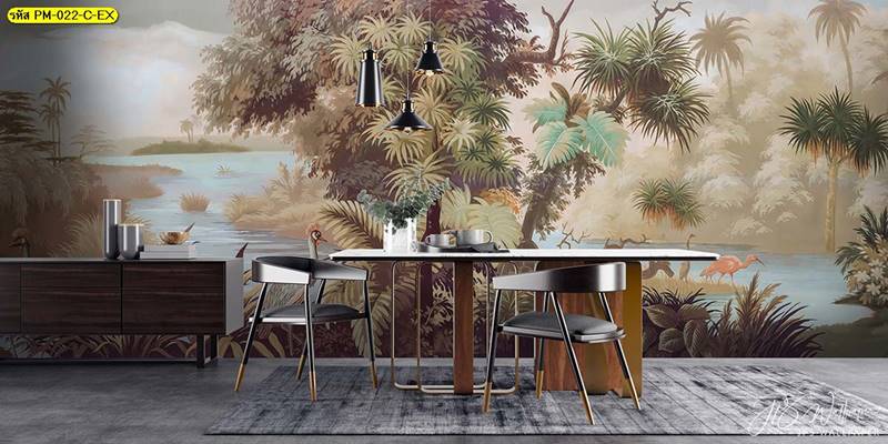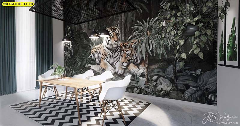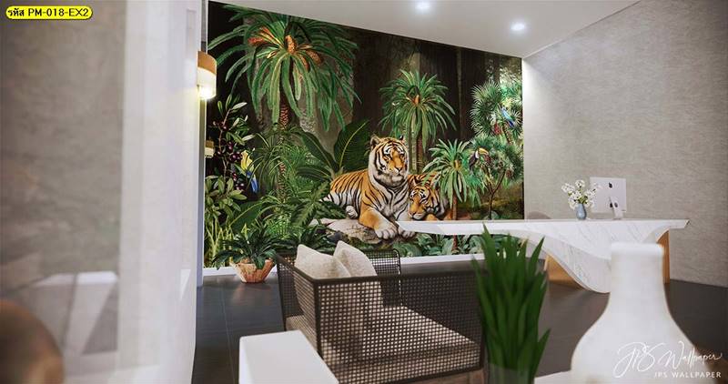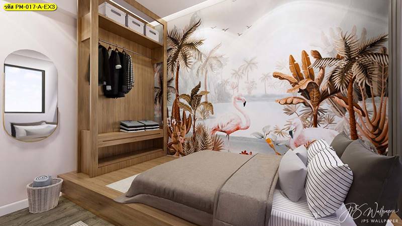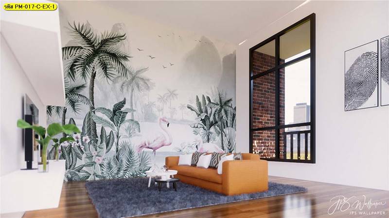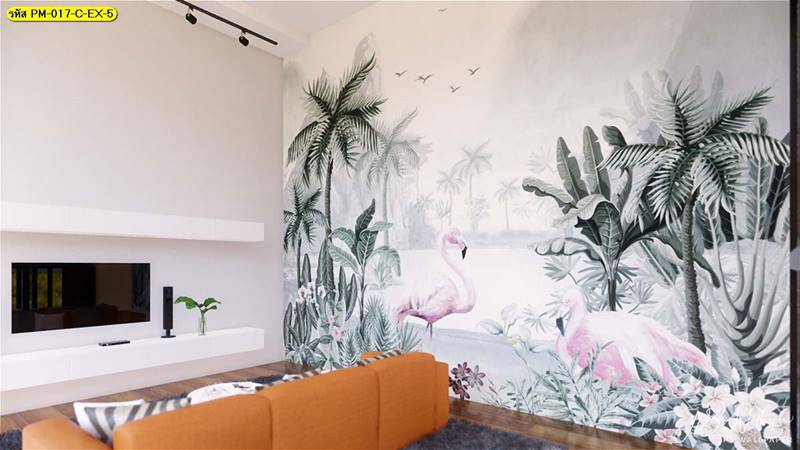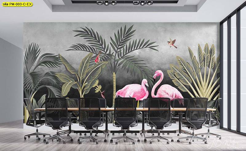 วอลเปเปอร์ติดผนัง ลายสวนป่า ตกแต่งห้องนั่งเล่น ภาพพิมพ์สวนป่า วอลเปเปอร์ติดห้องนอน วอลเปเปอร์ห้องสวยๆ วอลเปเปอร์สวนป่า ภาพติดผนัง แต่งห้องนอน แต่งห้องนั่งเล่น แต่งห้องรับแขก นกฟลามิงโก ป่าไม้ ลายเสือ ลายสัตว์