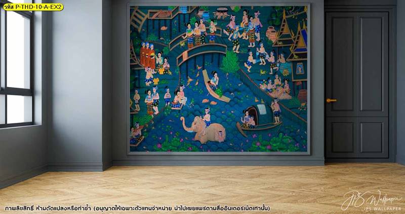 ห้องพระ ลายดอกบัว ลายต้นโพธิ์ ลายพระพุทธเจ้า ประสูติ ตรัสรู้ ปรินิพพาน ลายพญานาค ลายเทพนม ลายลิขสิทธิ์