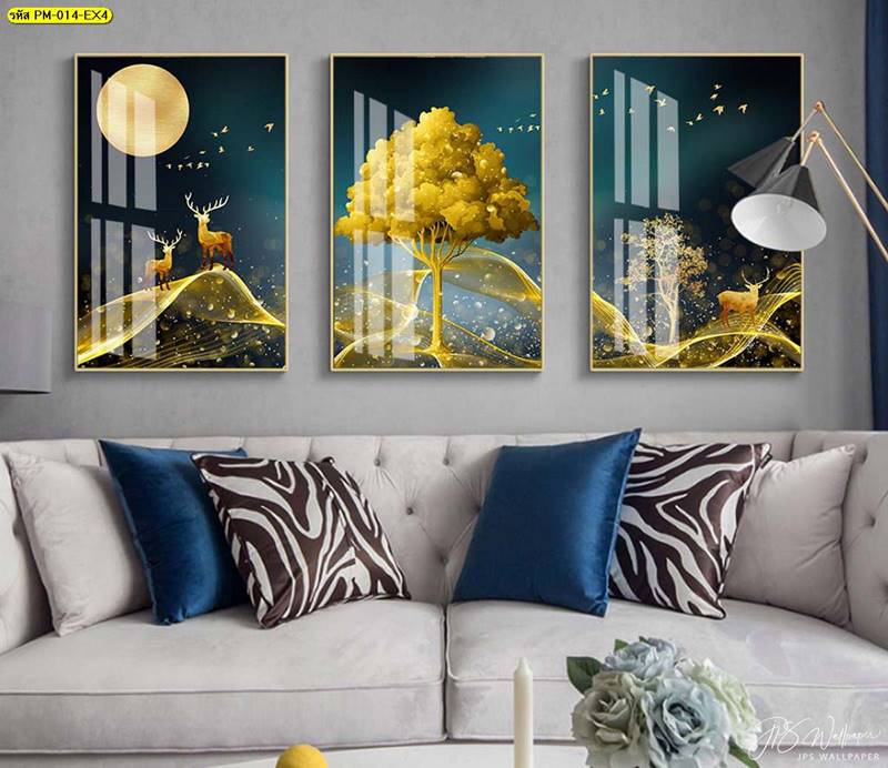 ลายกวาง ภาพพิมพ์กวาง วอลเปเปอร์กวาง ลายฮวงจุ้ย ภาพพิมพ์ฮวงจุ้ย วอลเปเปอร์ฮวงจุ้ย ลายสีทอง กวางทอง