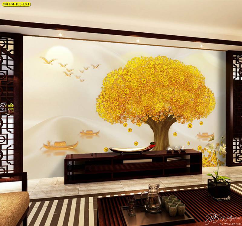 ลายต้นไม้ ภาพพิมพ์ต้นไม้ วอลเปเปอร์ต้นไม้ ลายฮวงจุ้ย ภาพพิมพ์ฮวงจุ้ย วอลเปเปอร์ฮวงจุ้ย ลายสีทอง