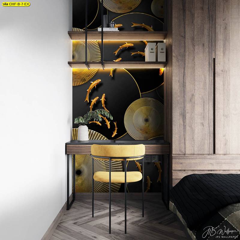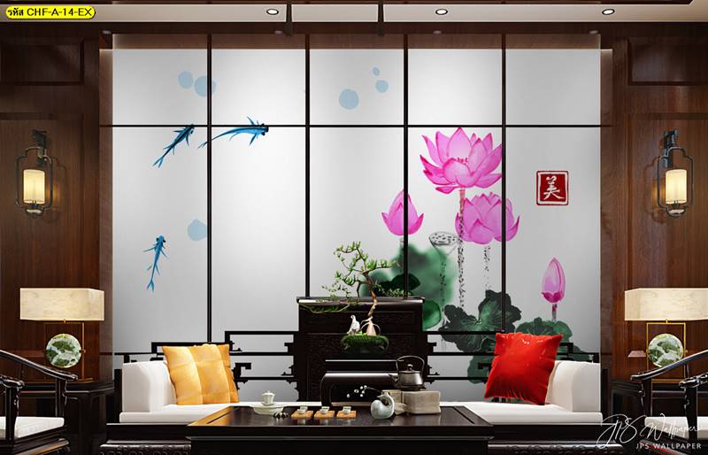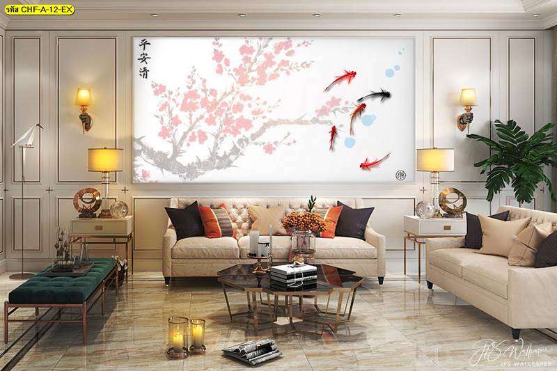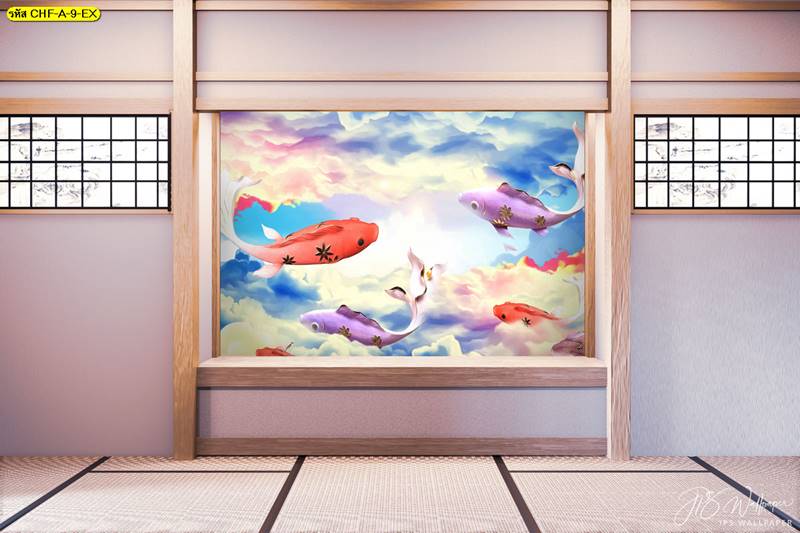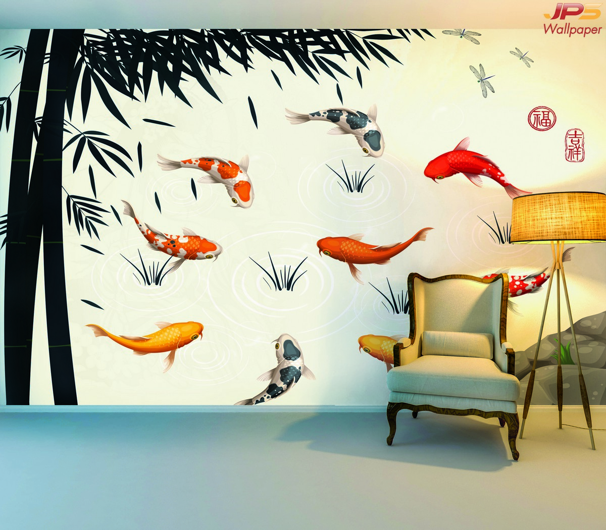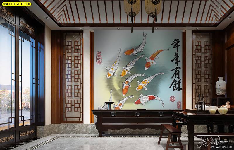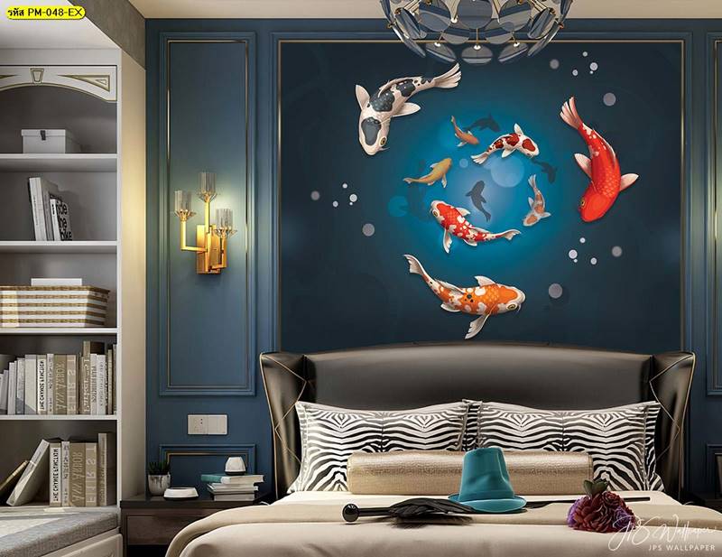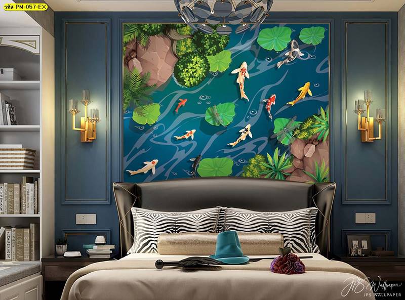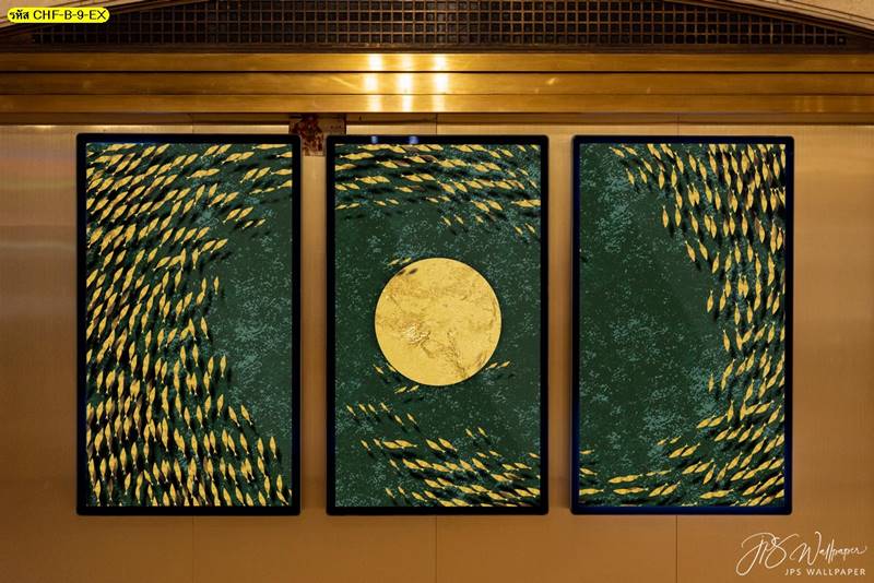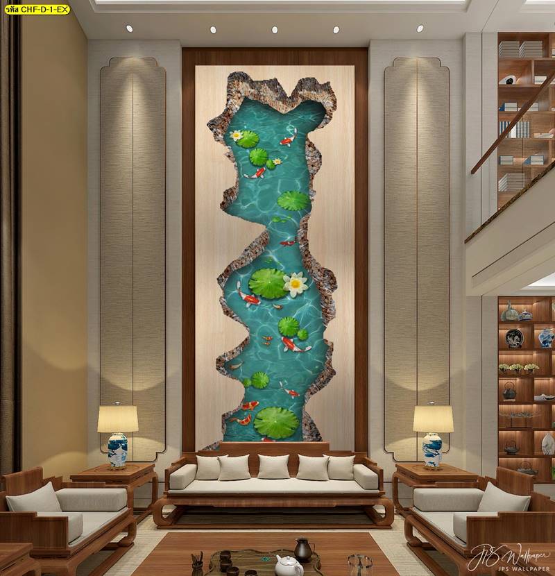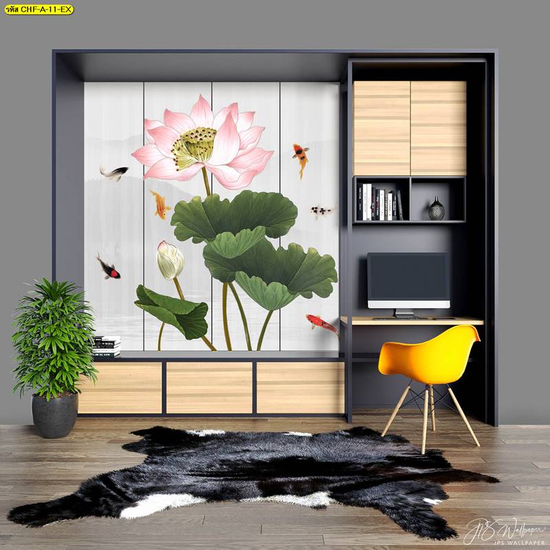 ลายปลาคราฟ ลายดอกบัว ภาพพิมพ์ปลาคราฟ วอลเปเปอร์ปลาคราฟ ลายสีทอง ลายฮวงจุ้ย ภาพพิมพ์ฮวงจุ้ย วอลเปเปอร์ฮวงจุ้ย