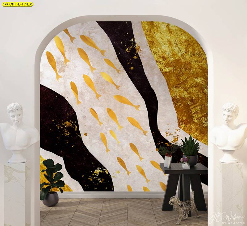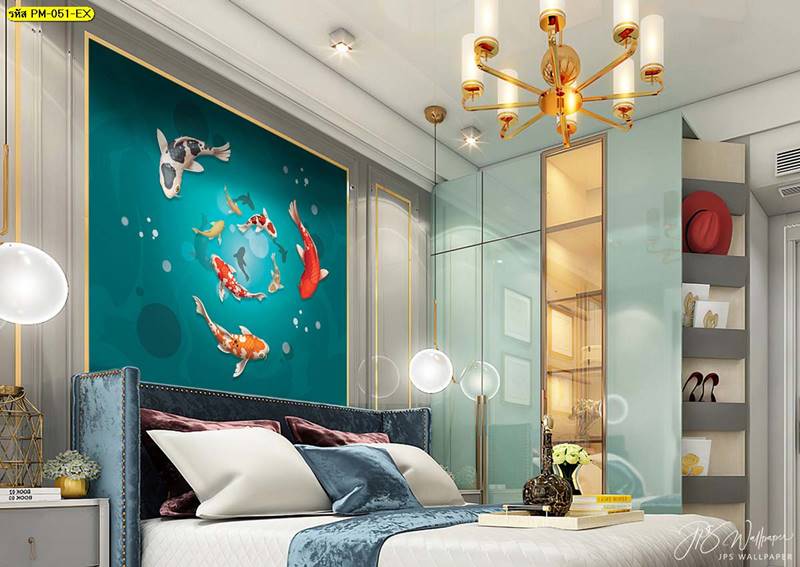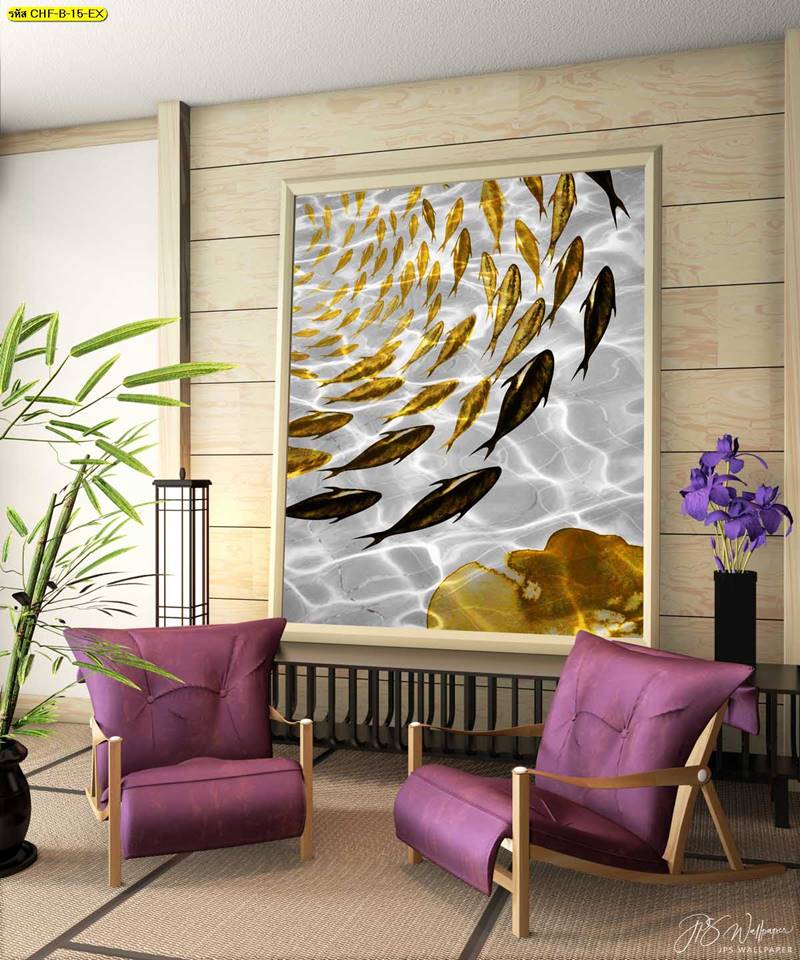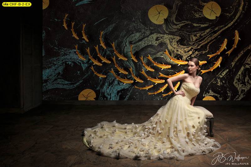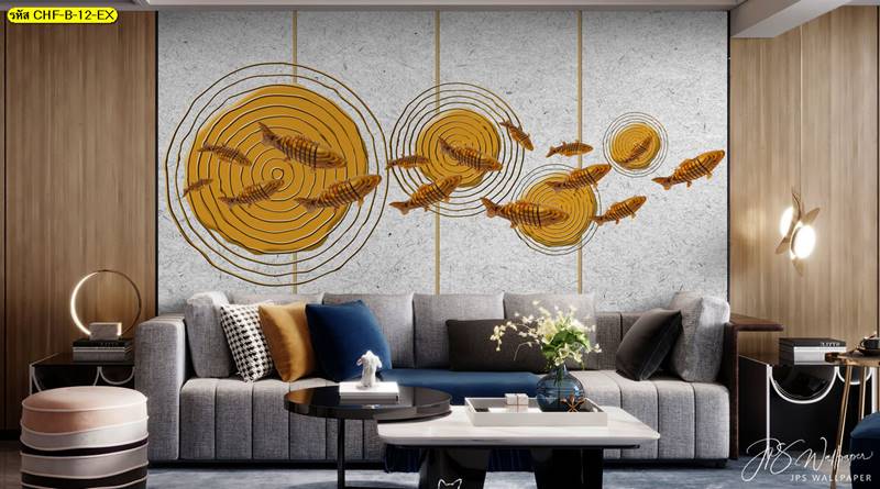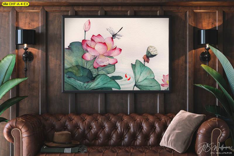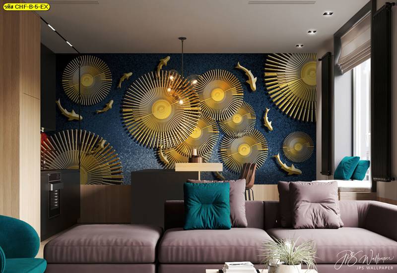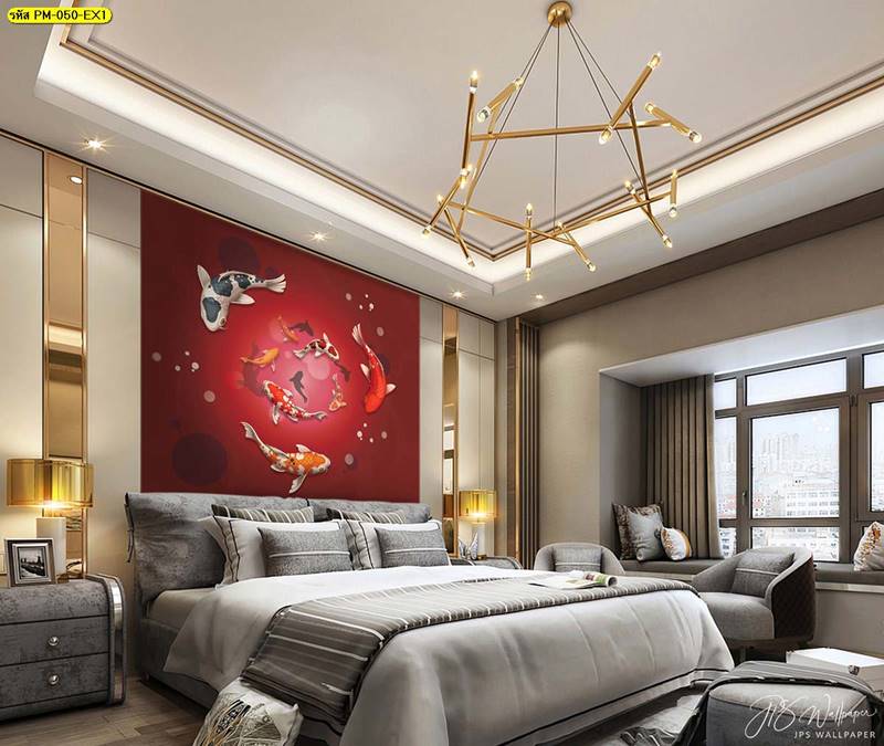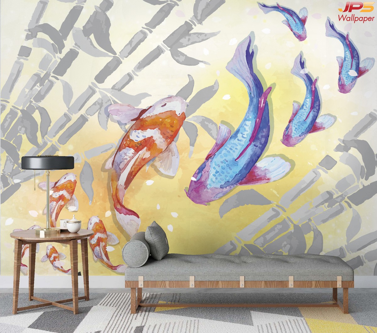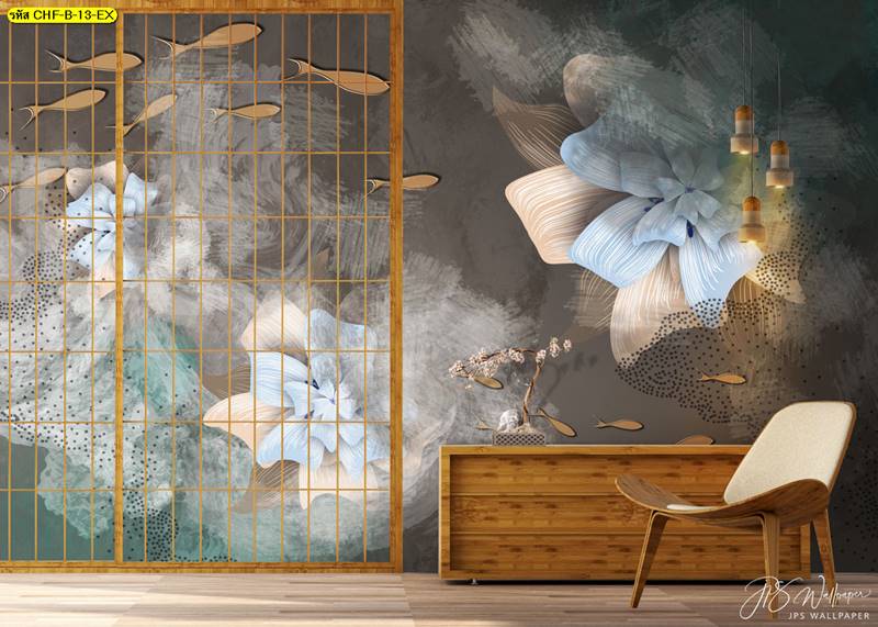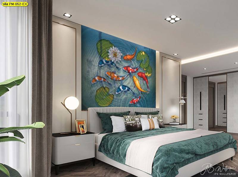 ลายปลาคราฟ ลายดอกบัว ภาพพิมพ์ปลาคราฟ วอลเปเปอร์ปลาคราฟ ลายสีทอง ลายฮวงจุ้ย ภาพพิมพ์ฮวงจุ้ย วอลเปเปอร์ฮวงจุ้ย