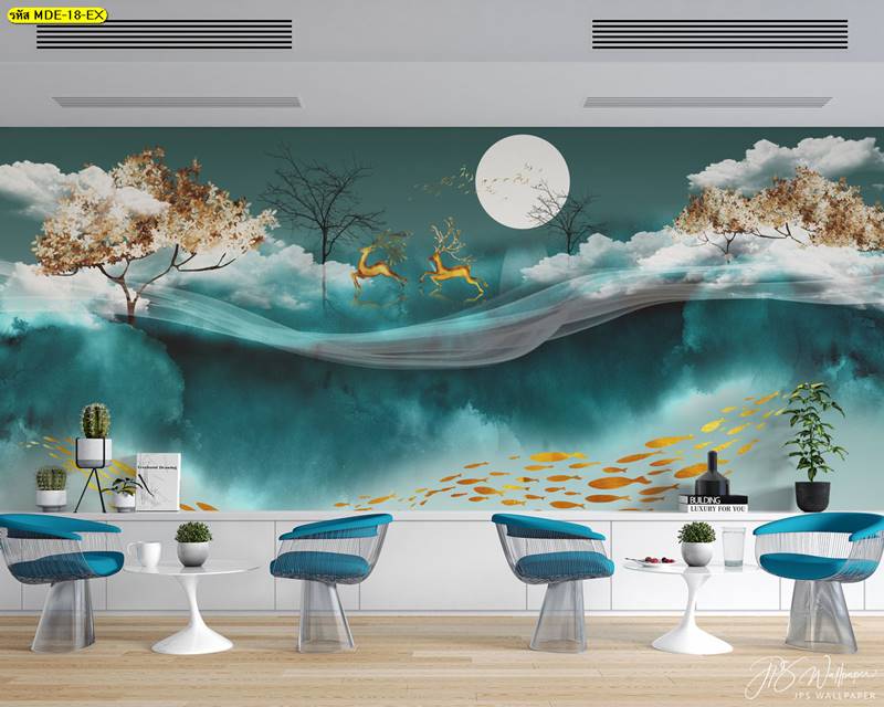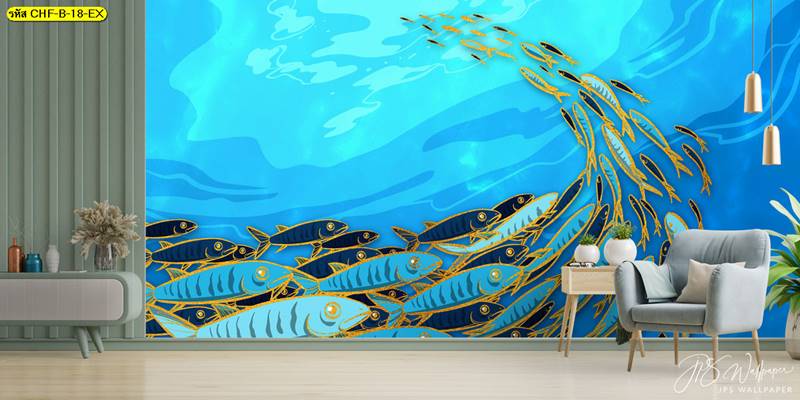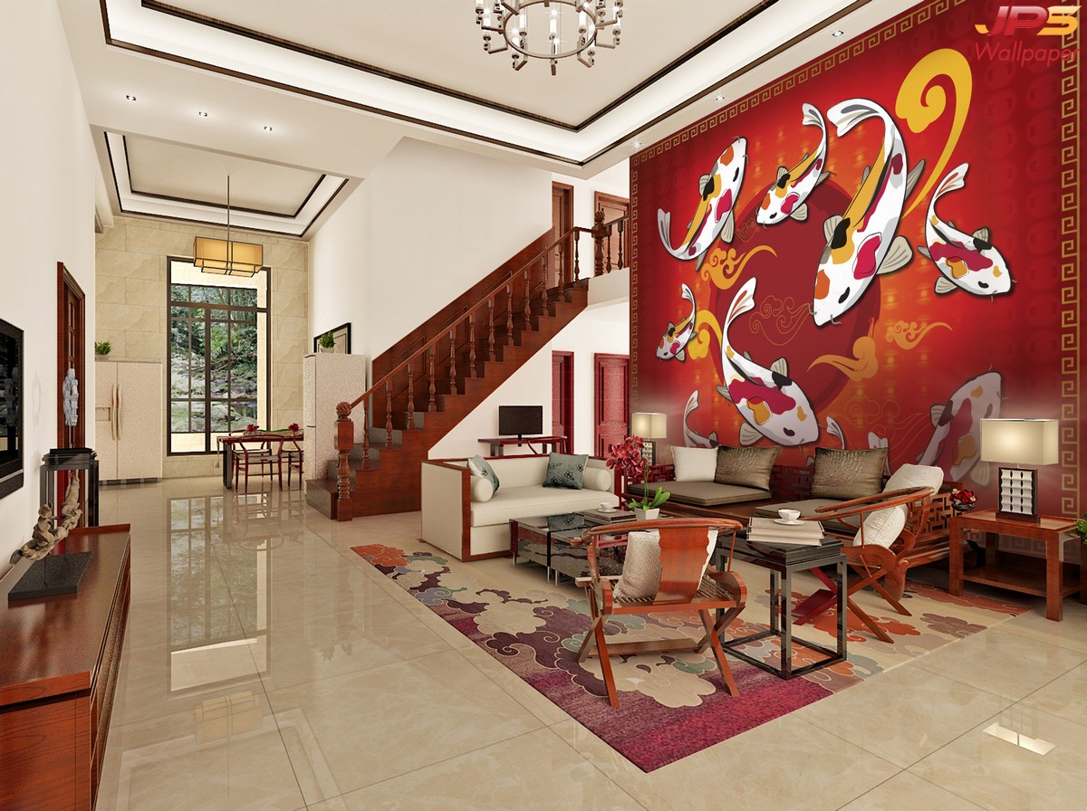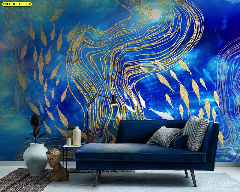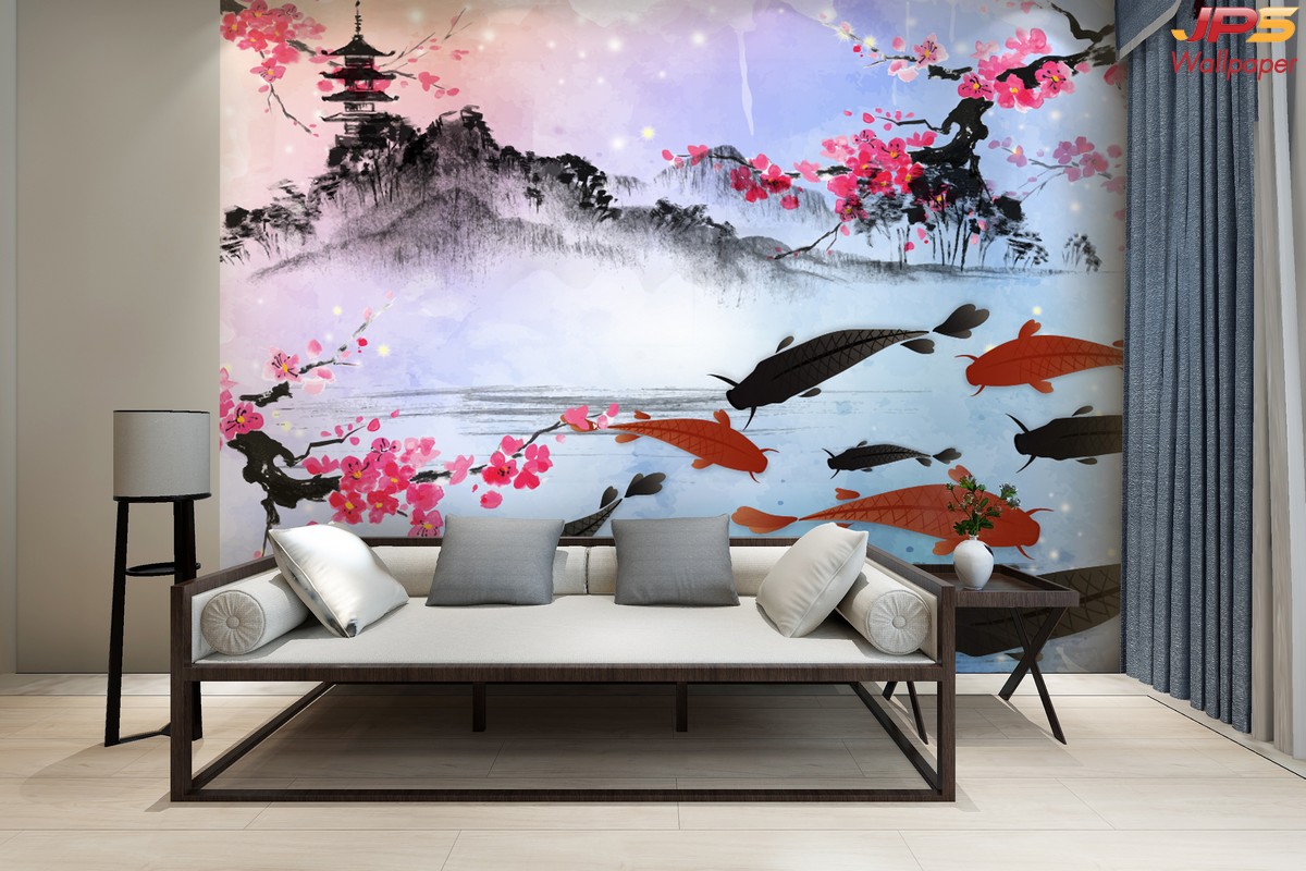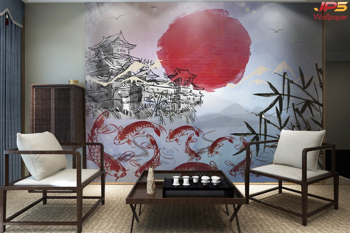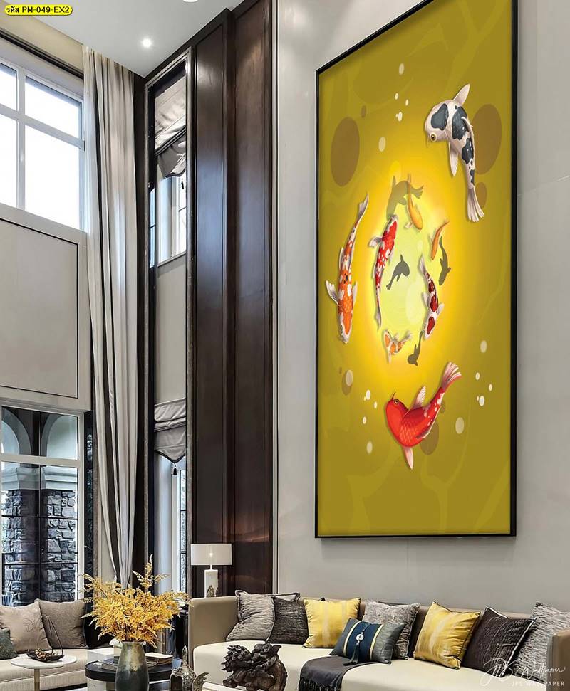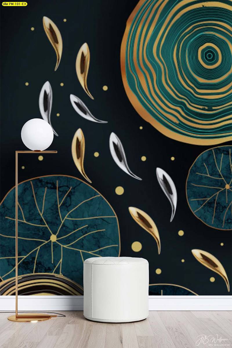 ลายปลาคราฟ ลายดอกบัว ภาพพิมพ์ปลาคราฟ วอลเปเปอร์ปลาคราฟ ลายสีทอง ลายฮวงจุ้ย ภาพพิมพ์ฮวงจุ้ย วอลเปเปอร์ฮวงจุ้ย