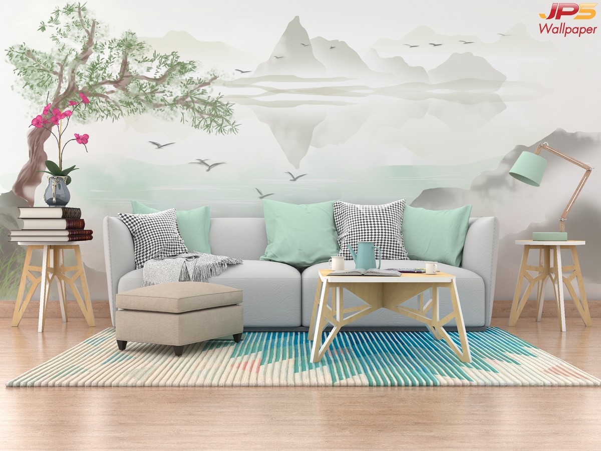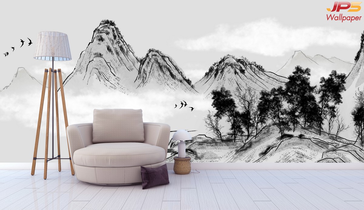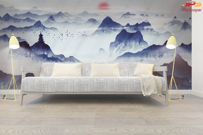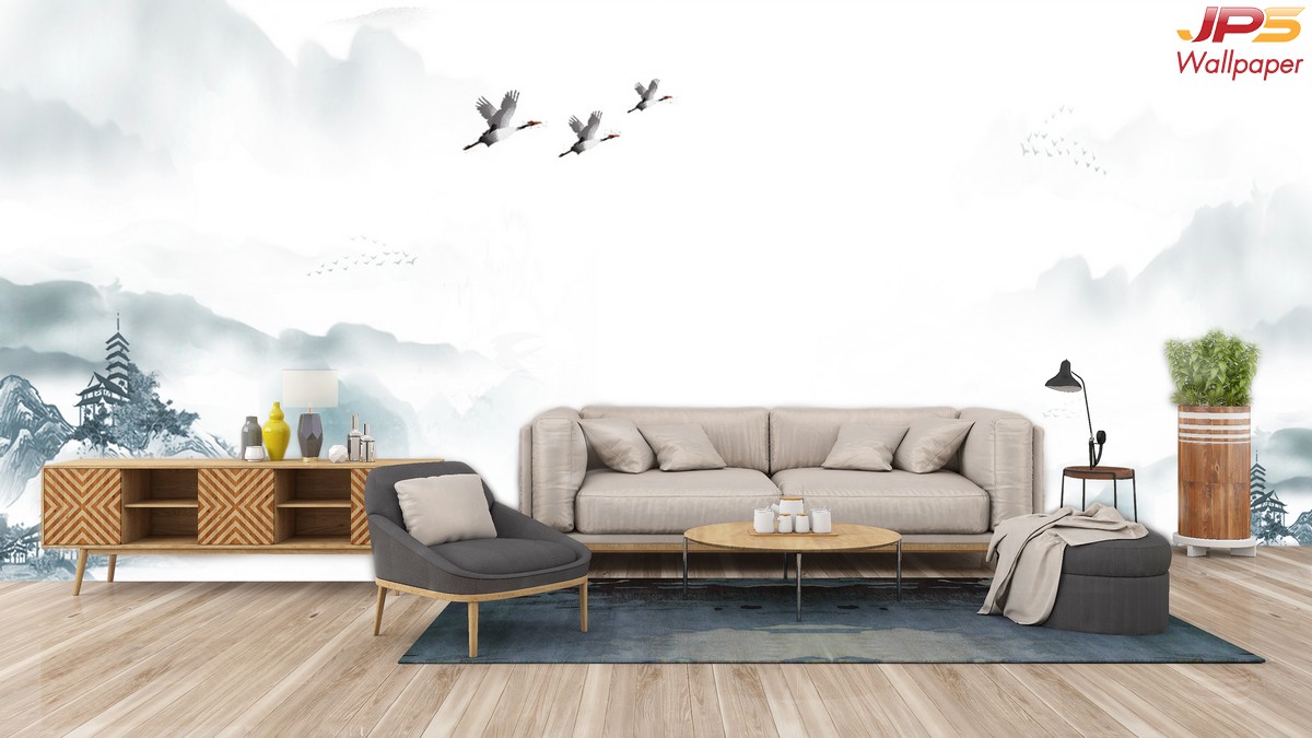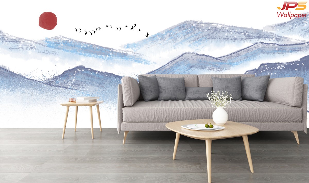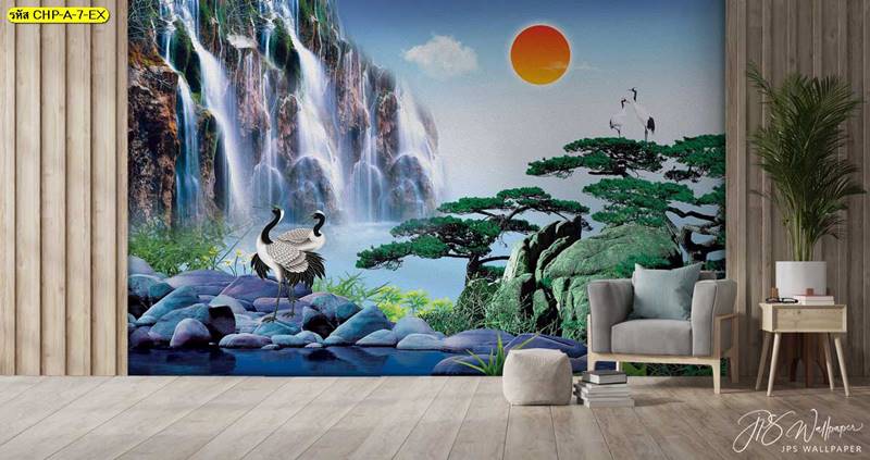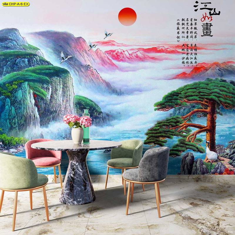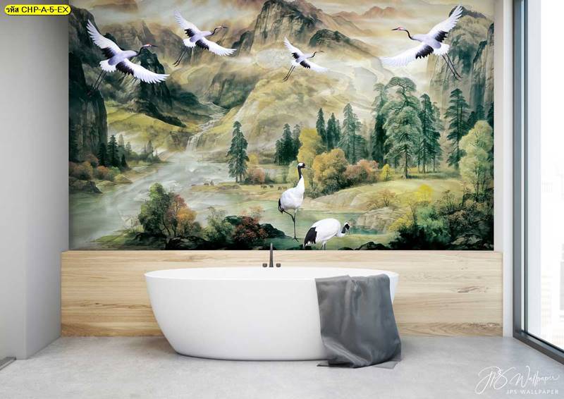 ลายภูเขา ภาพพิมพ์ภูเขา วอลเปเปอร์ภูเขา ลายฮวงจุ้ย ภาพพิมพ์ฮวงจุ้ย วอลเปเปอร์ฮวงจุ้ย ลายจีน นกกระเรียน
