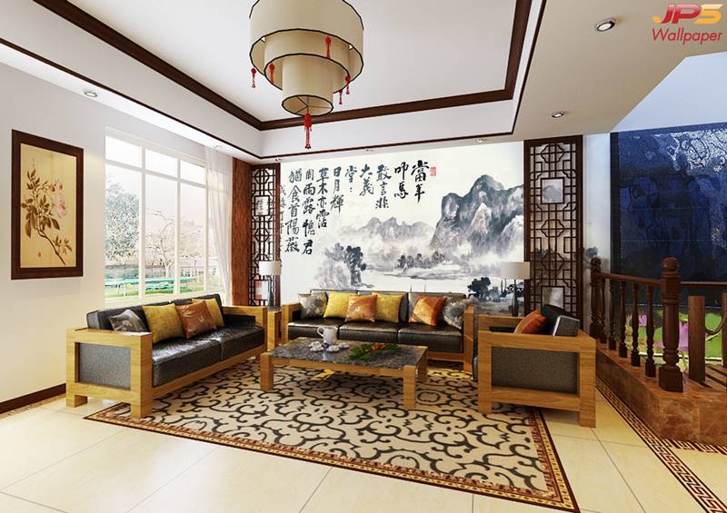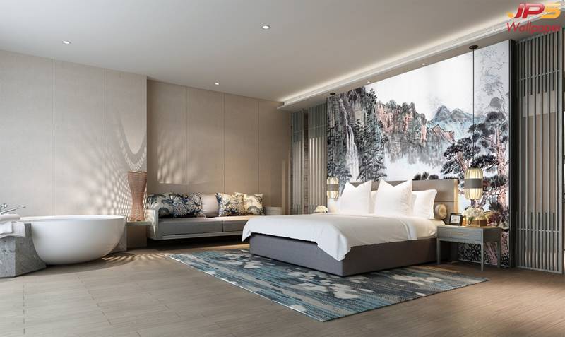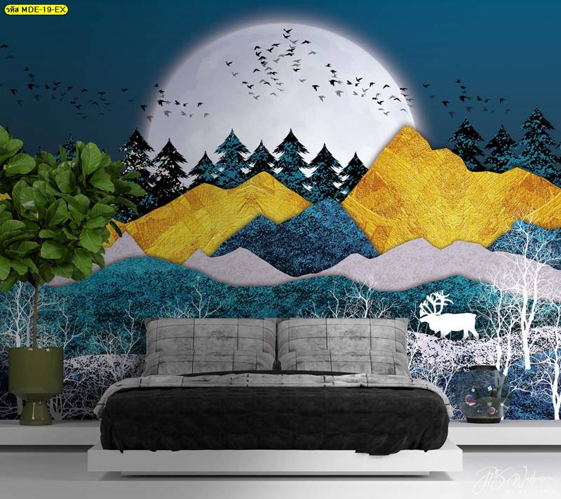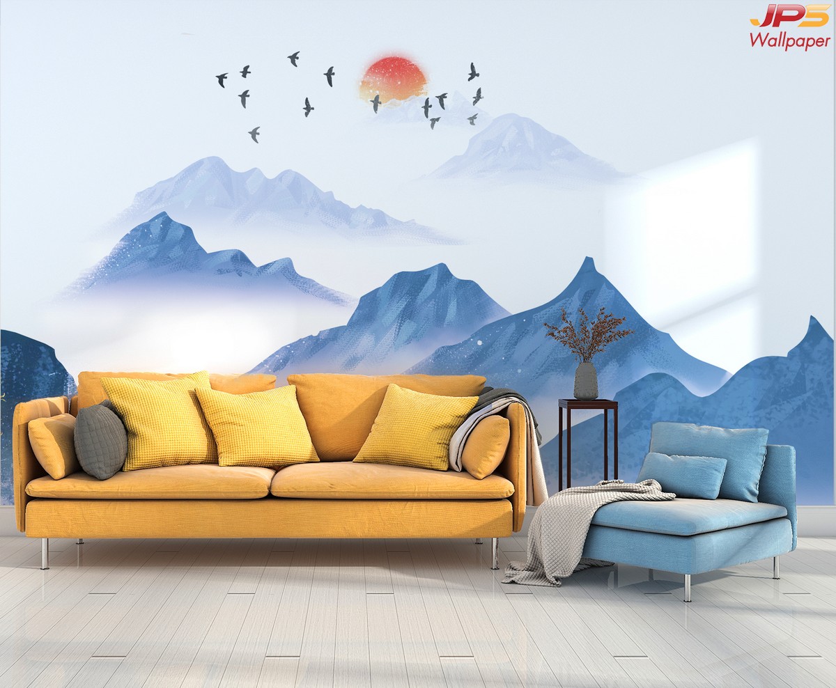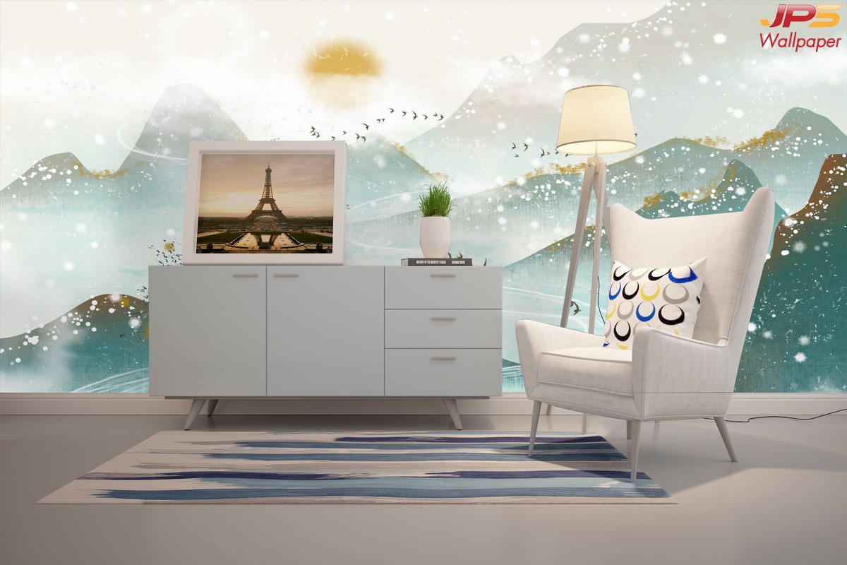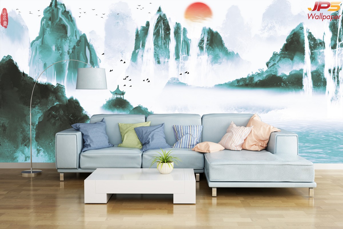 ลายภูเขา ภาพพิมพ์ภูเขา วอลเปเปอร์ภูเขา ลายฮวงจุ้ย ภาพพิมพ์ฮวงจุ้ย วอลเปเปอร์ฮวงจุ้ย ลายจีน นกกระเรียน