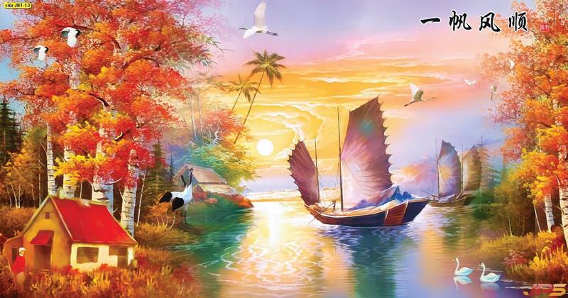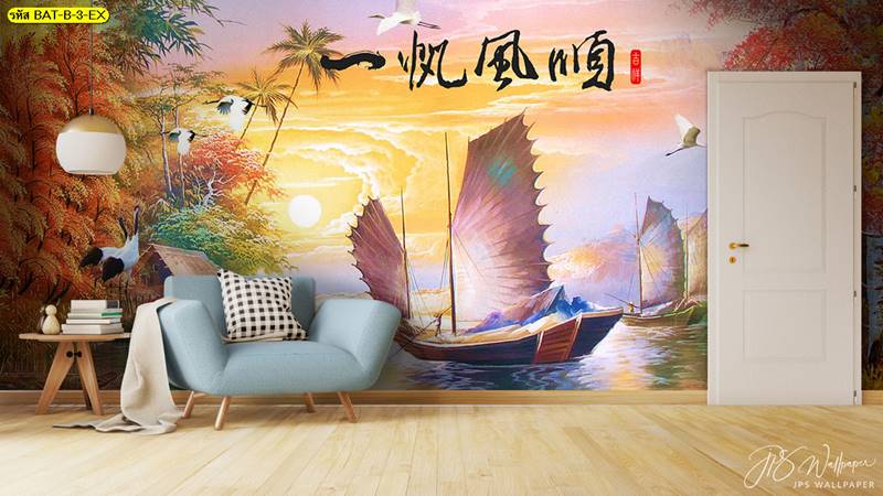 ลายเรือ ภาพพิมพ์เรือ วอลเปเปอร์เรือ ลายฮวงจุ้ย ภาพพิมพ์ฮวงจุ้ย วอลเปเปอร์ฮวงจุ้ย ลายจีน เรือใบ