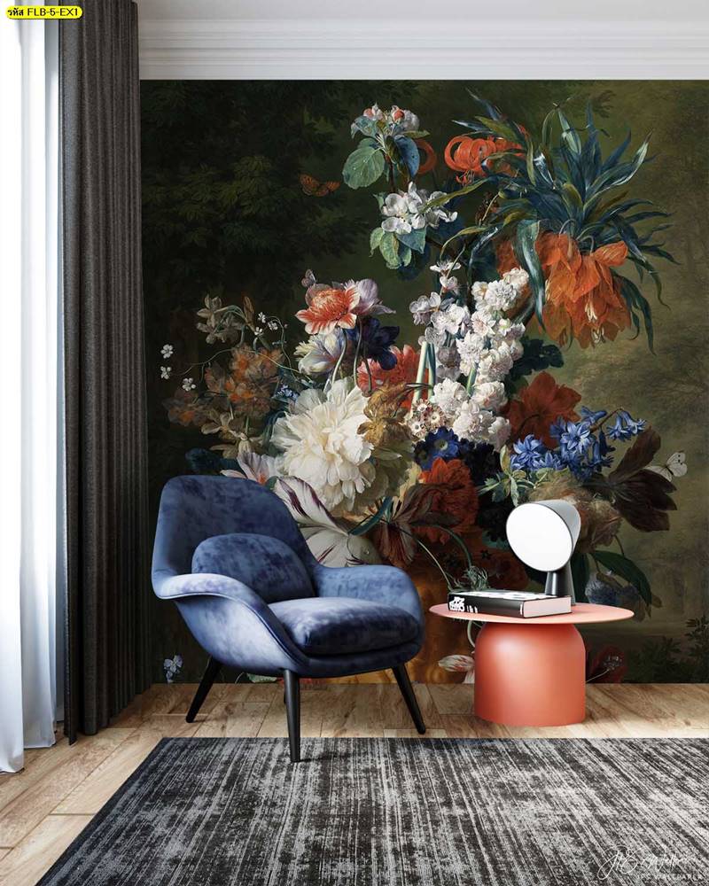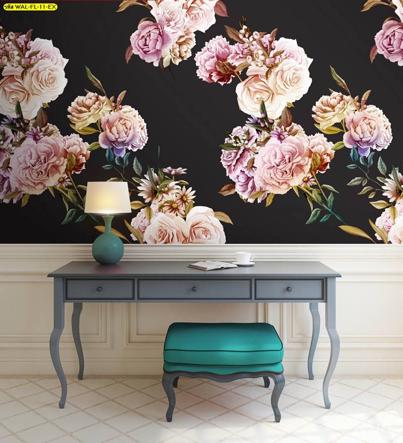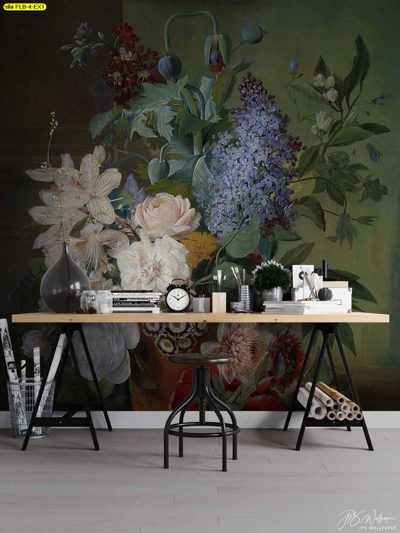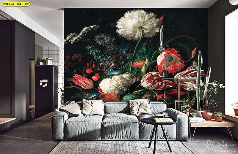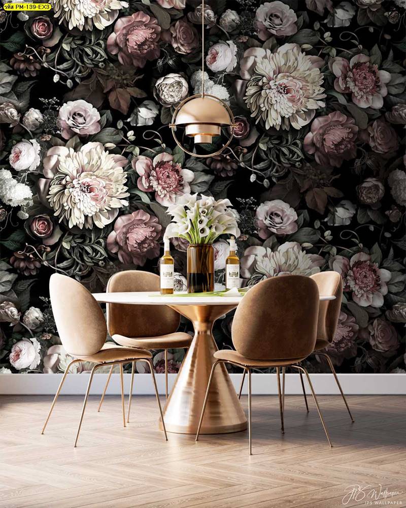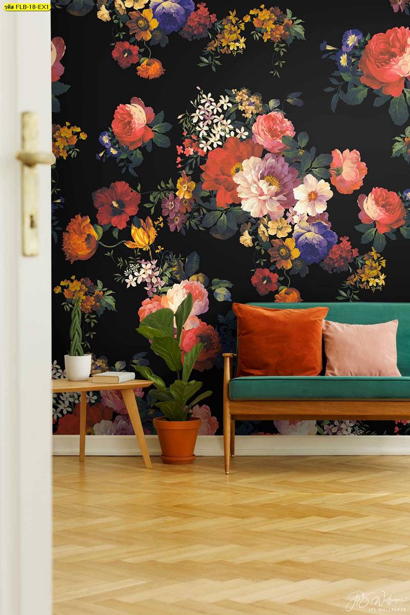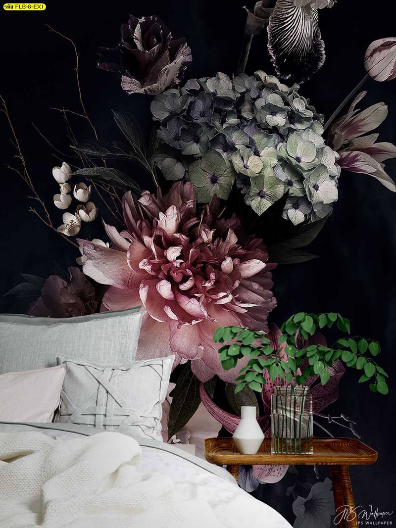 ลายดอกไม้เข้ม ภาพพิมพ์ดอกไม้เข้ม ลายดอกไม้ติดห้องนอน วอลเปเปอร์ดอกไม้เข้ม แต่งห้องนั่งเล่น แต่งห้องรับแขก ดอกไม้ ลายดอกไม้