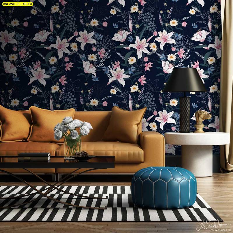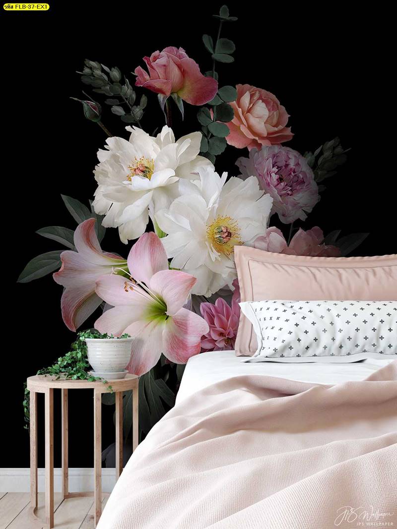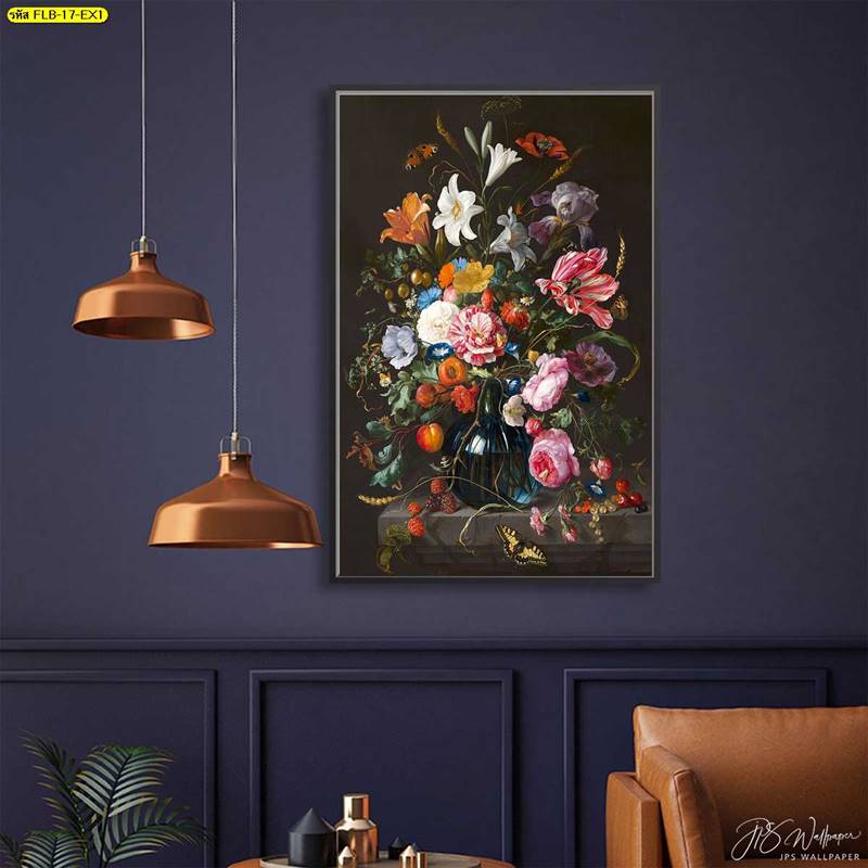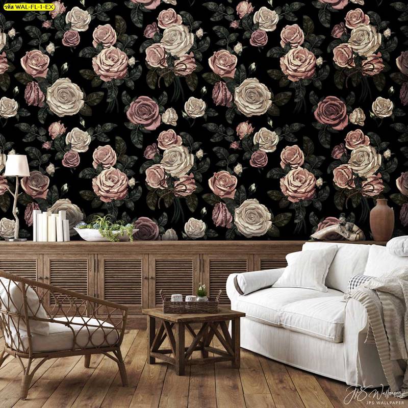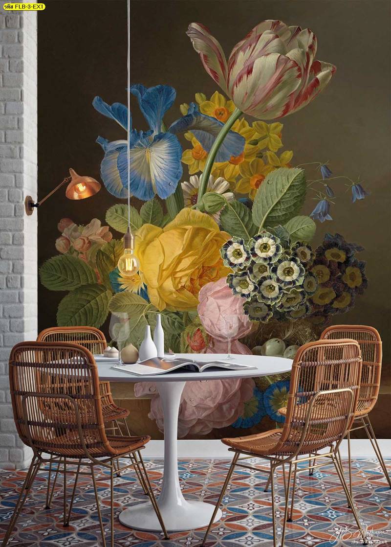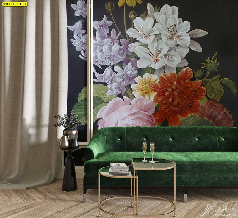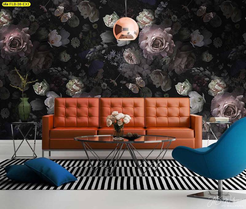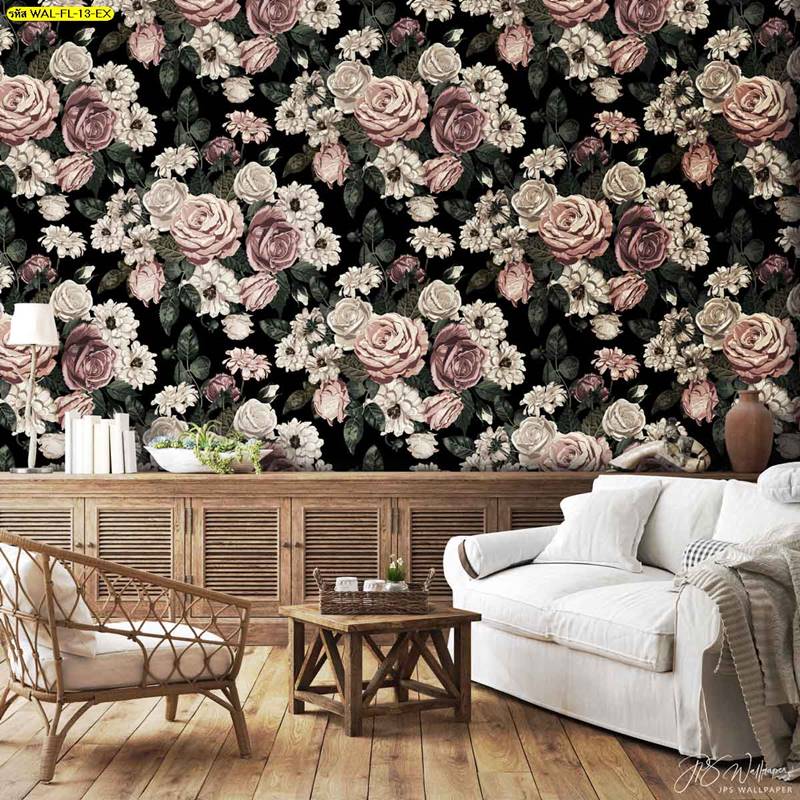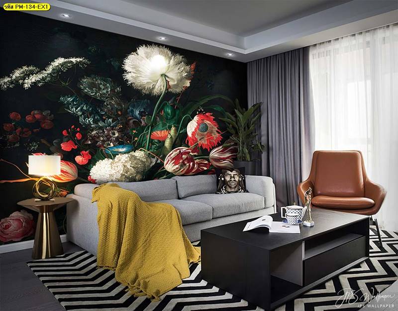 ลายดอกไม้เข้ม ภาพพิมพ์ดอกไม้เข้ม ลายดอกไม้ติดห้องนอน วอลเปเปอร์ดอกไม้เข้ม แต่งห้องนั่งเล่น แต่งห้องรับแขก ดอกไม้ ลายดอกไม้