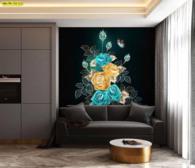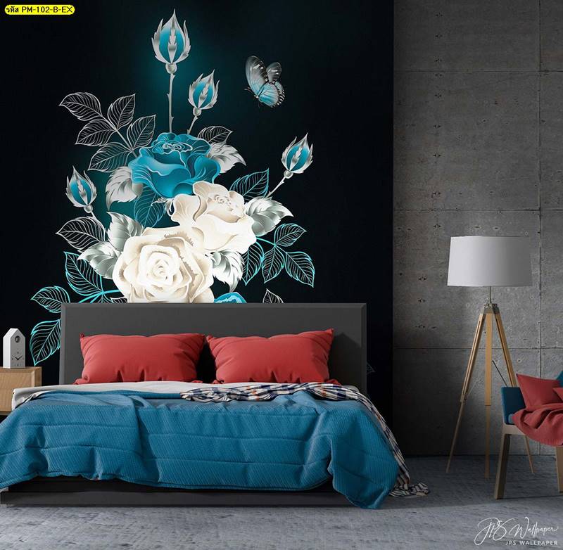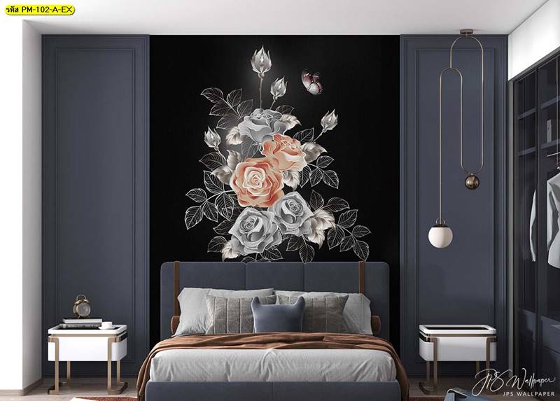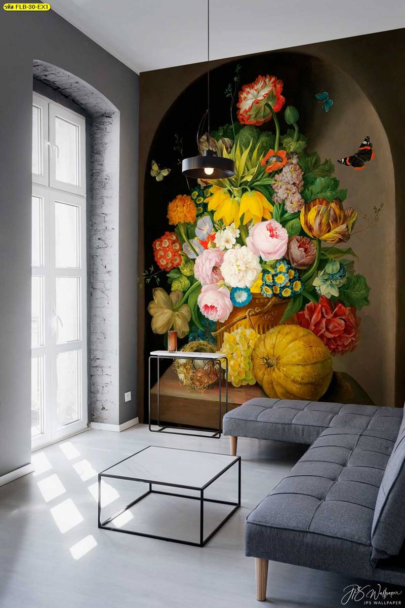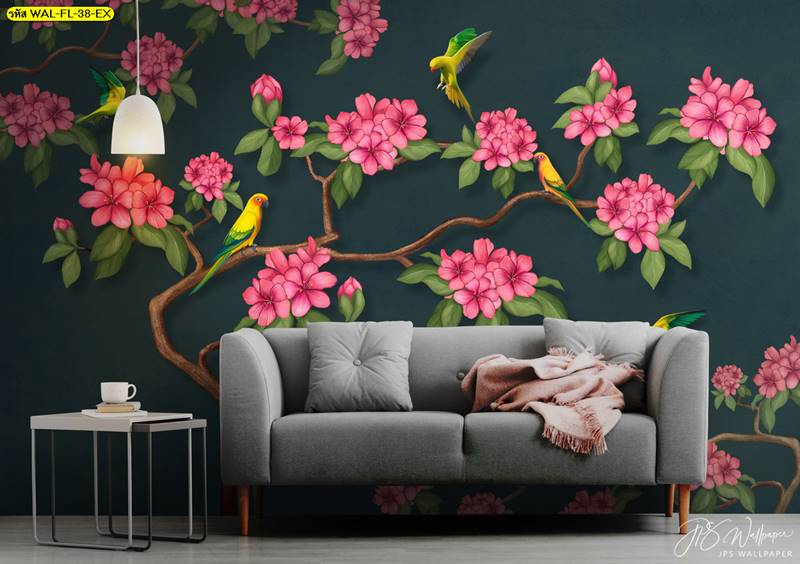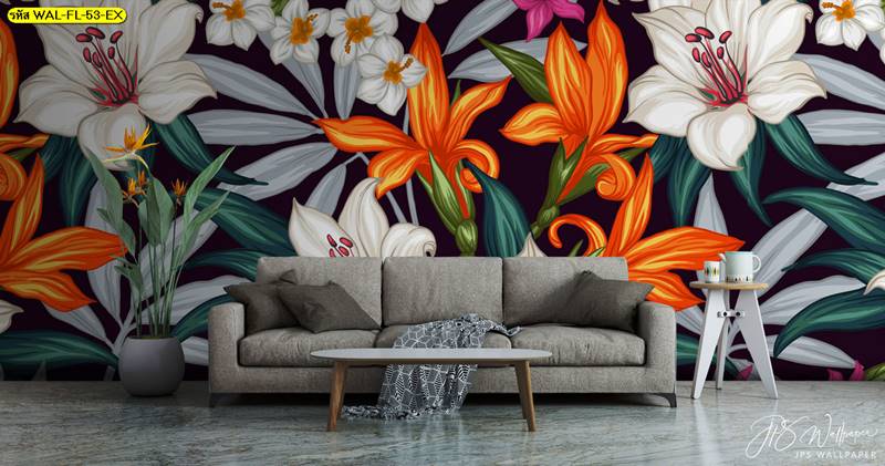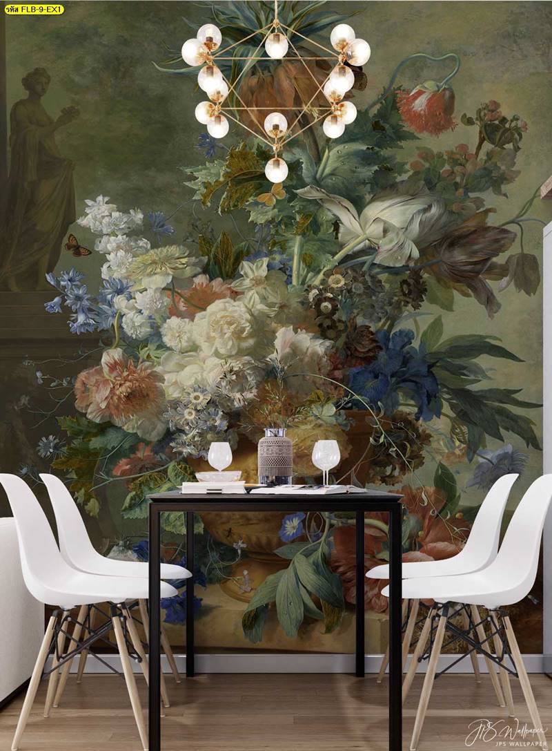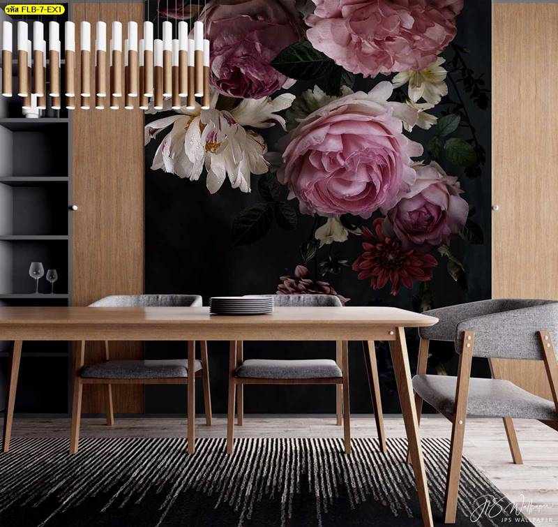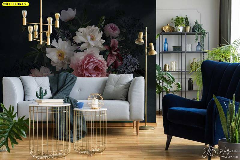 ลายดอกไม้เข้ม ภาพพิมพ์ดอกไม้เข้ม ลายดอกไม้ติดห้องนอน วอลเปเปอร์ดอกไม้เข้ม แต่งห้องนั่งเล่น แต่งห้องรับแขก ดอกไม้ ลายดอกไม้