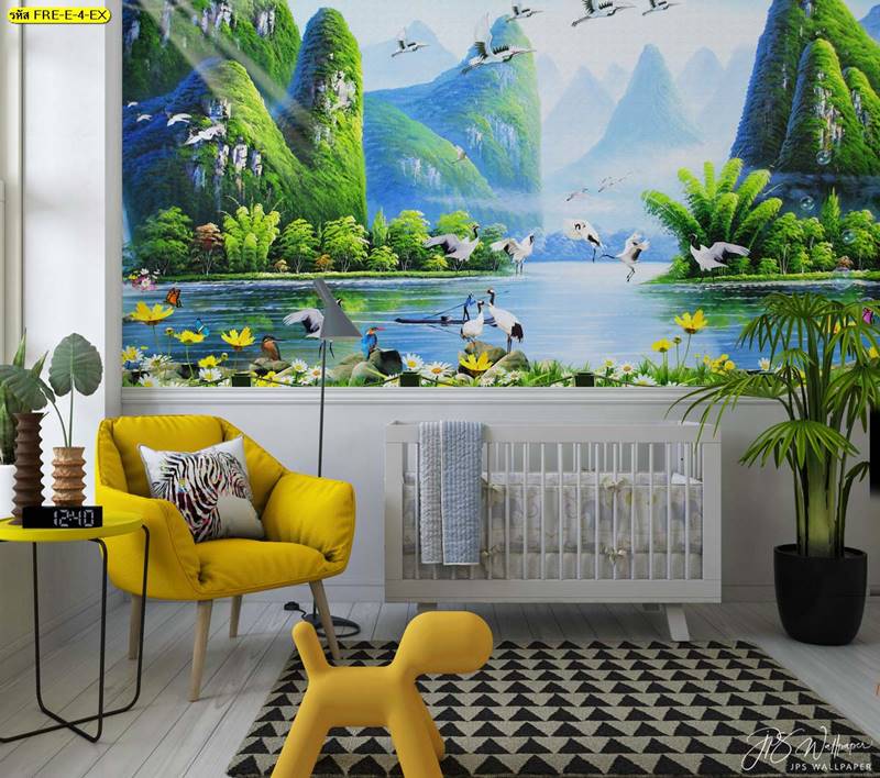 ลายสวนป่า ภาพติดผนัง ป่าไม้ ใบไม้ สวนป่า ภาพวาดสวนป่า กรุผนัง ลายกรุผนัง ยุโรป ภาพสไตล์ยุโรป