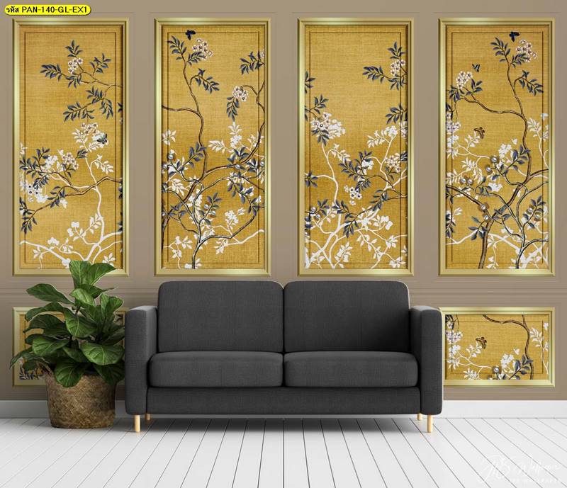 ภาพใส่กรอบ ภาพพิมพ์ใส่กรอบ แต่งห้องนั่งเล่น แต่งห้องรับแขก ลายภาพใส่กรอบ ลายสัตว์ ลายนก ลายสีทอง ลายดอกบัว ลายค้นไม้…