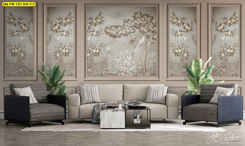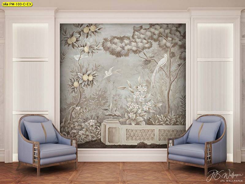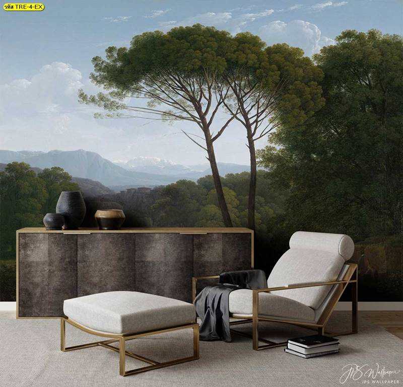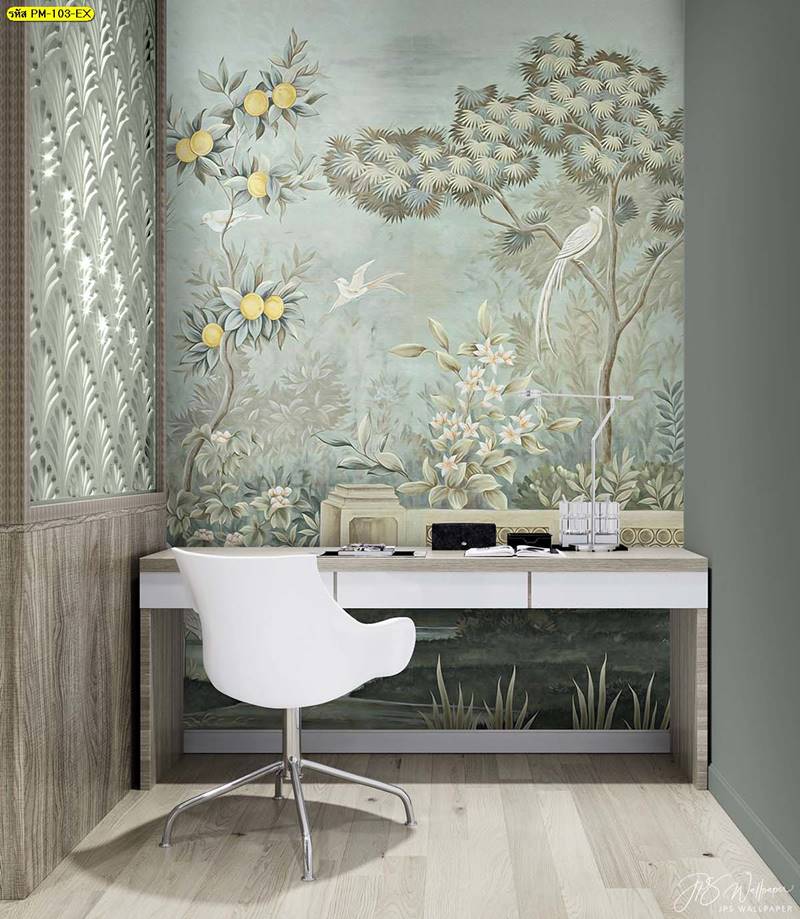 ลายสวนป่า ภาพติดผนัง ป่าไม้ ใบไม้ สวนป่า ภาพวาดสวนป่า กรุผนัง ลายกรุผนัง ยุโรป ภาพสไตล์ยุโรป