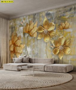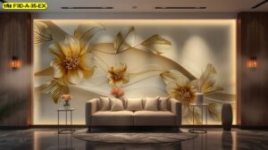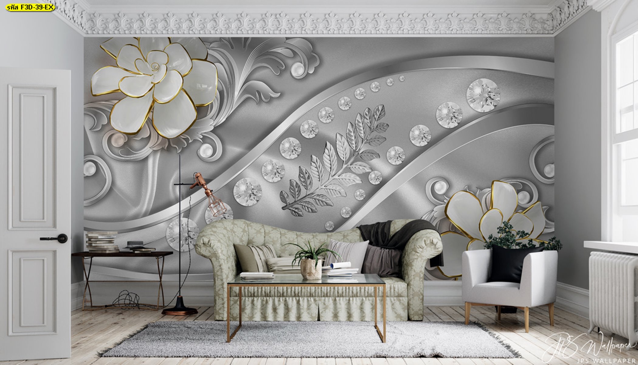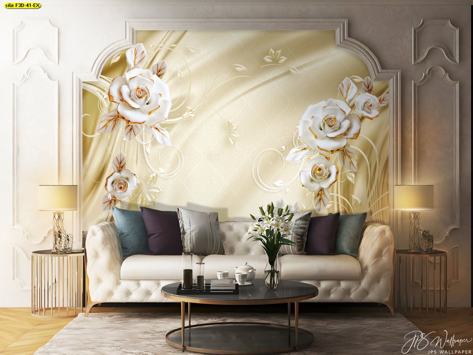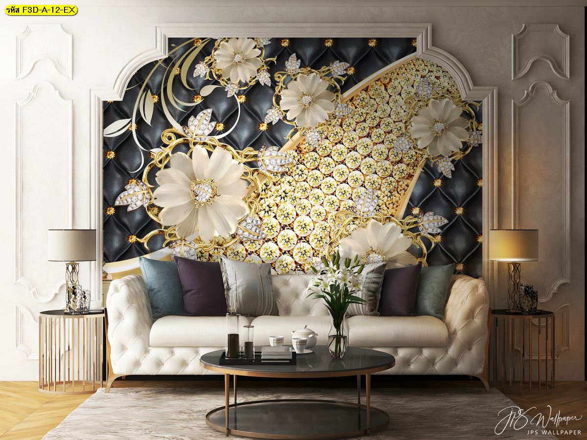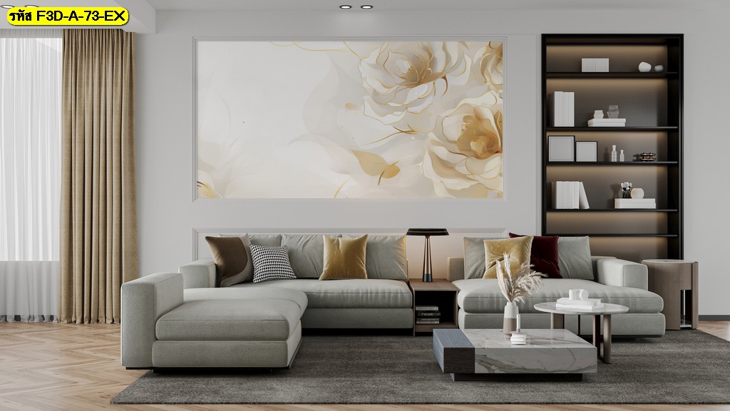 Contemporary classic interior with sofa, round carpet, glass coffee table, floor lamp and moldings. 3d render illustration mockup.