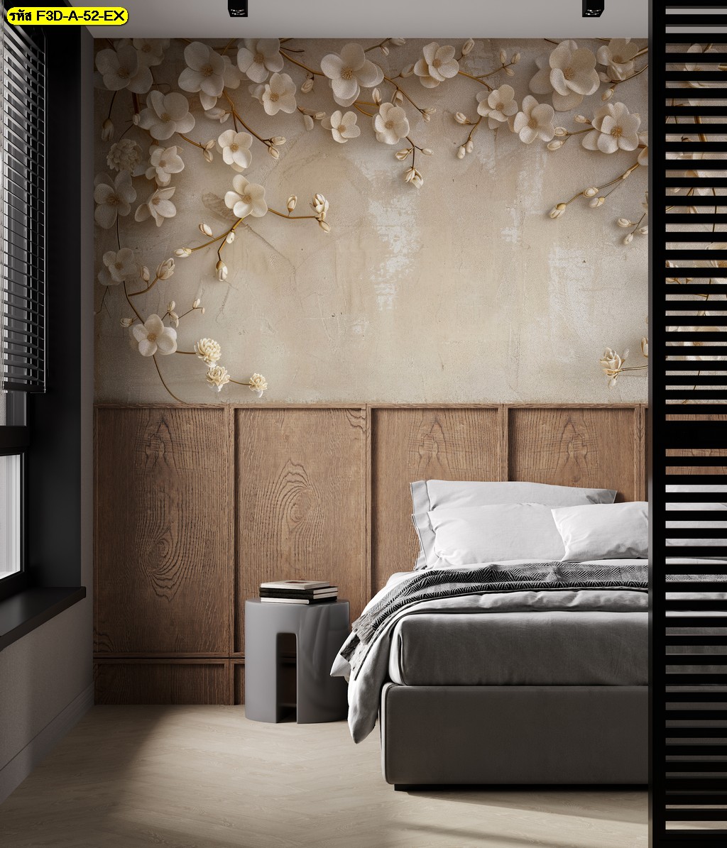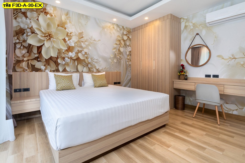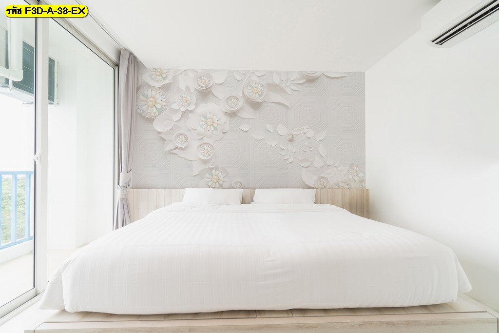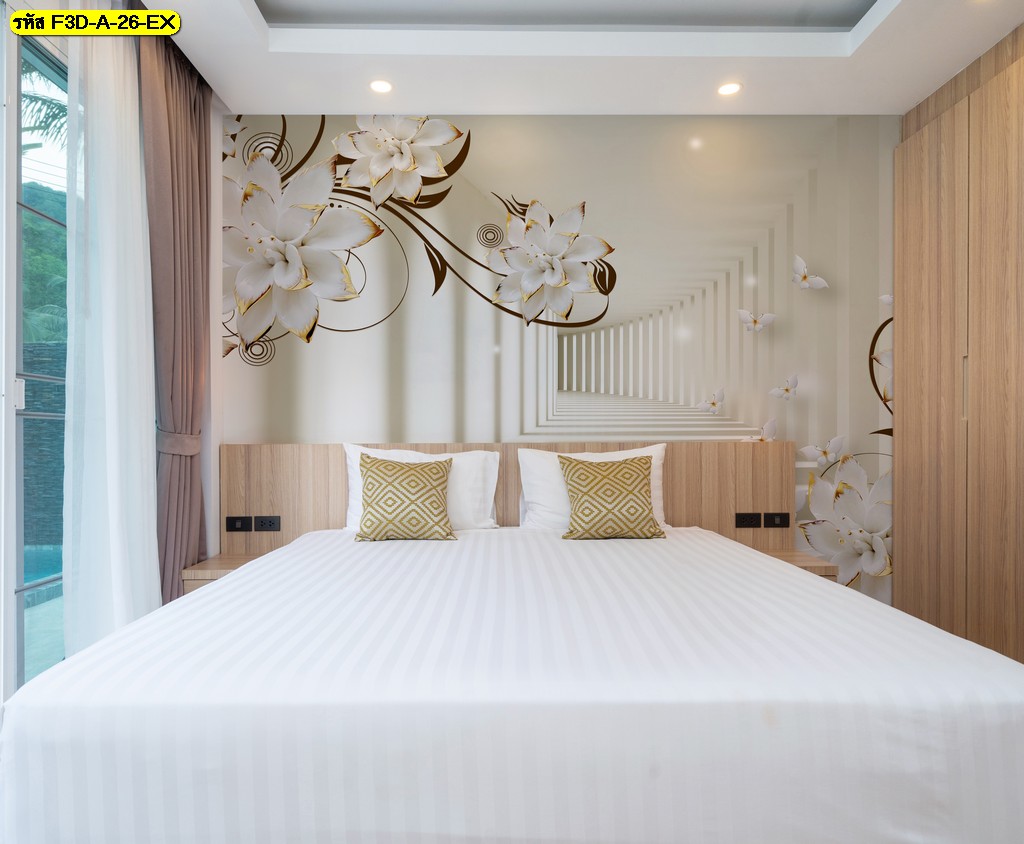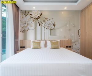A white bedroom with a wooden bed, bed linen and a pillow with white cloak. good for relaxing The white room makes the room feel comfortable.