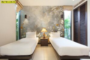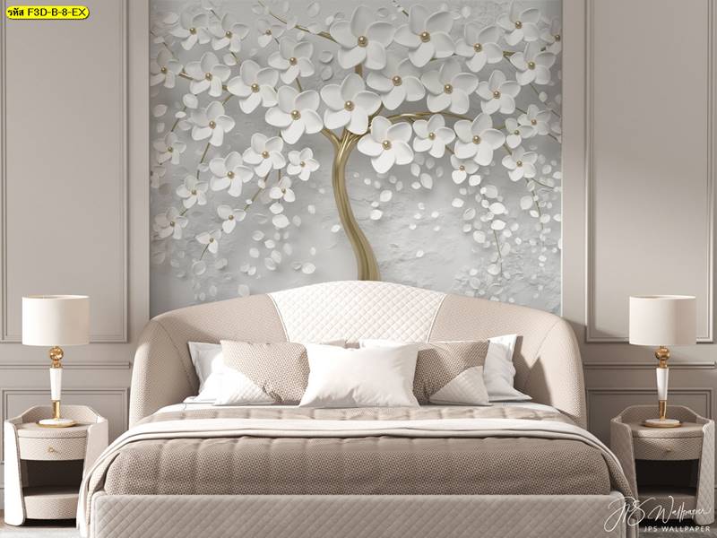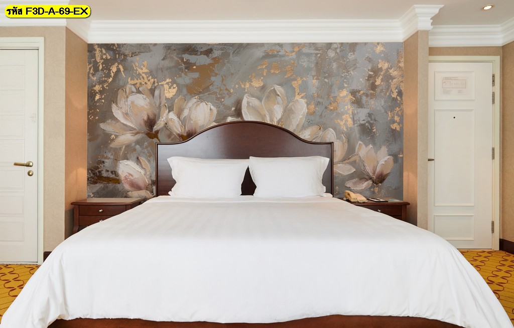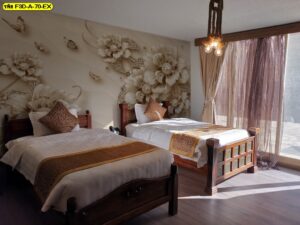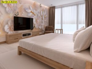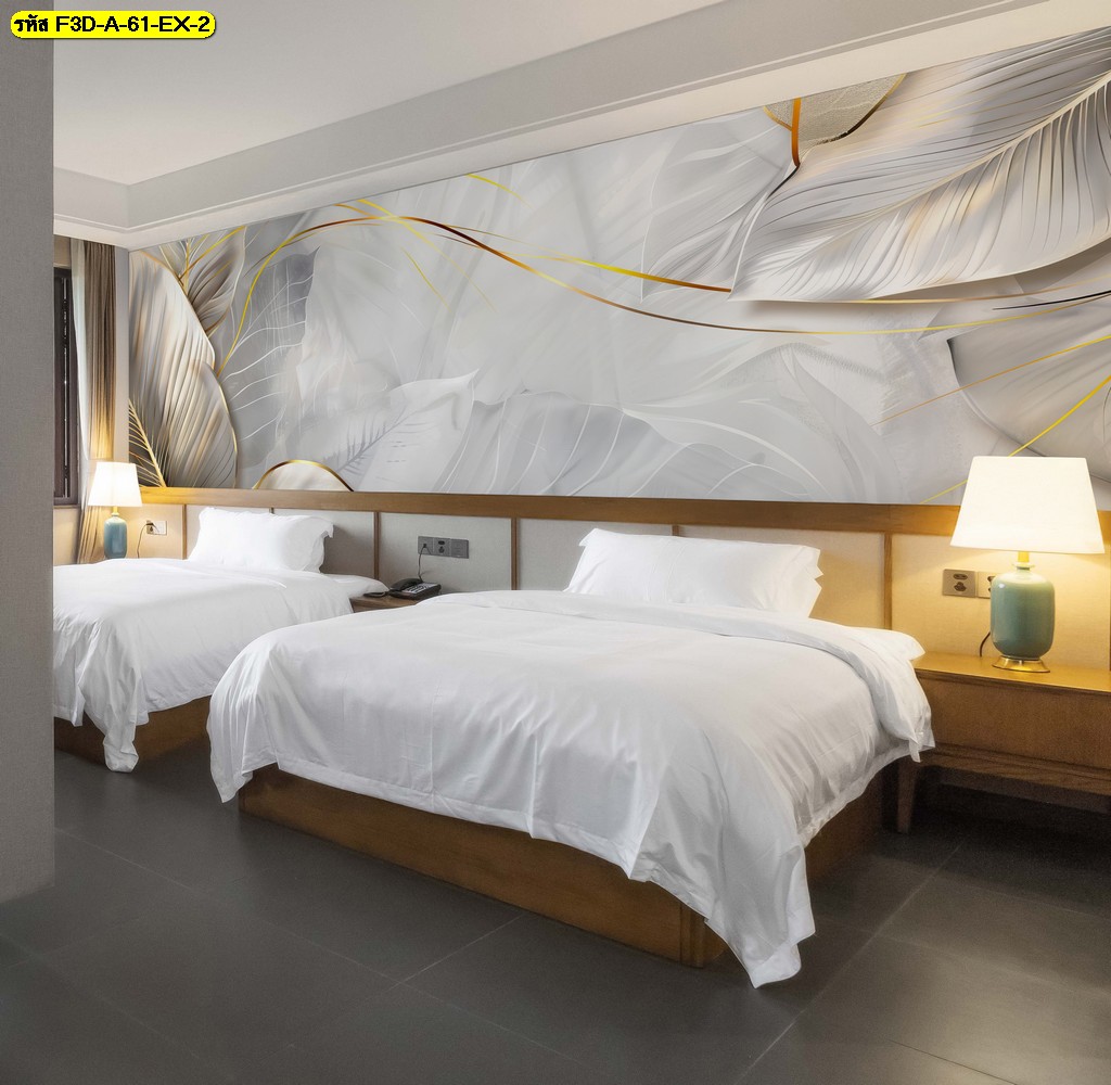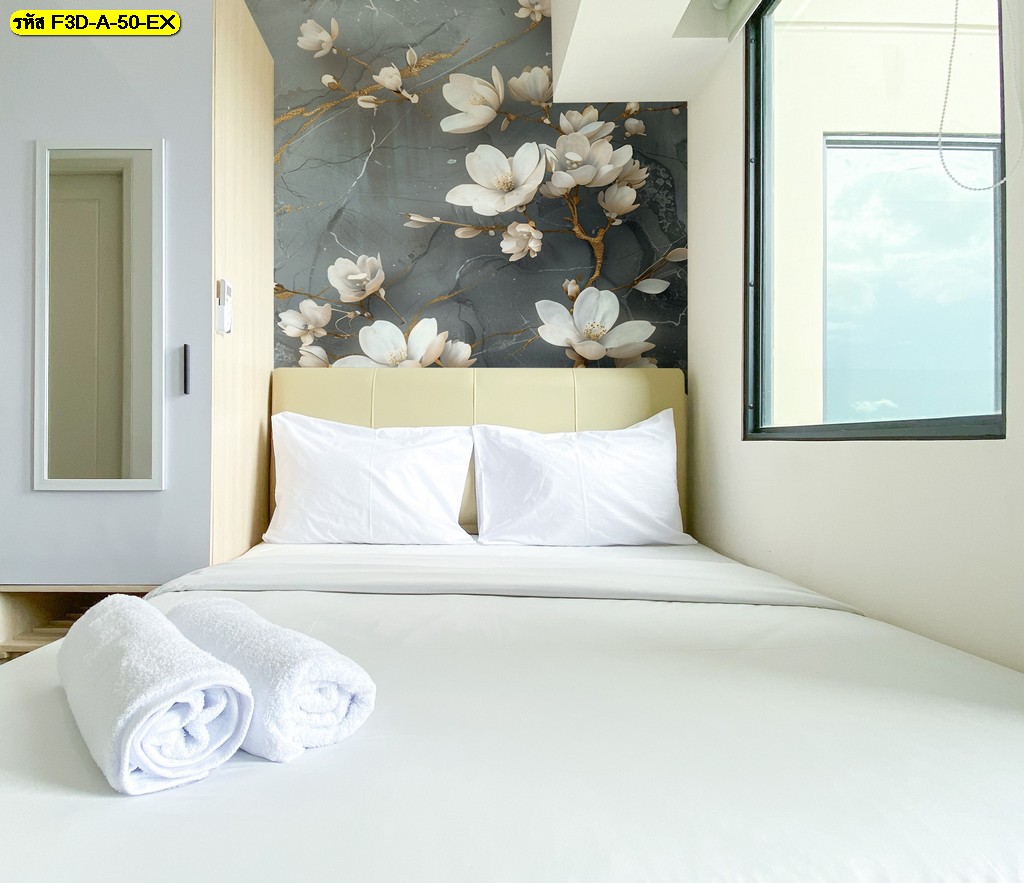 A white bedroom with a wooden bed, bed linen and a pillow with white cloak. good for relaxing The white room makes the room feel comfortable.