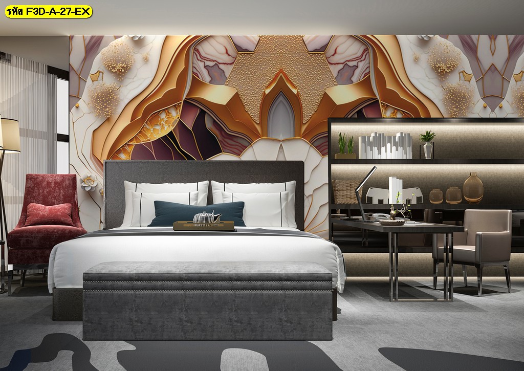 3d rendering beautiful luxury bedroom suite in hotel with working table near bathroom