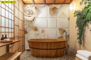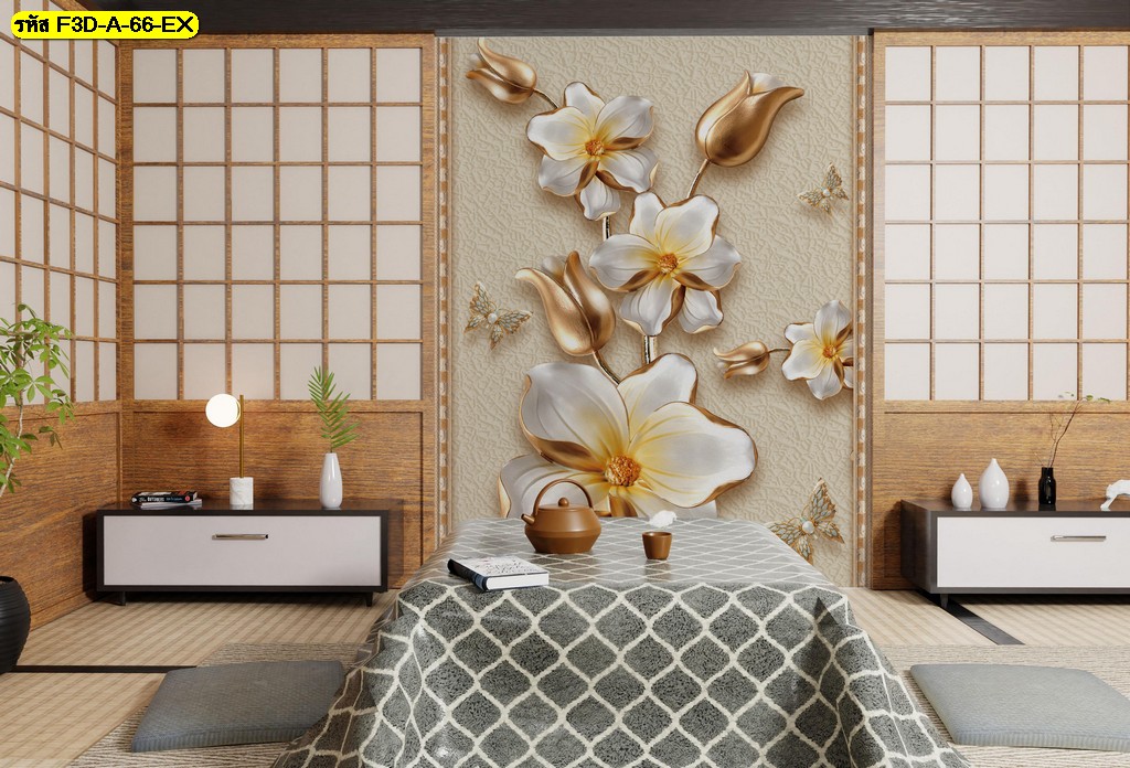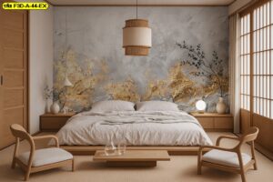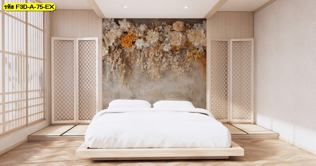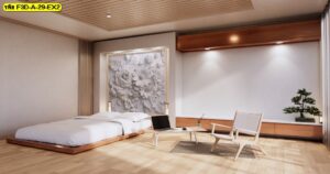 interior mock up with zen bed plant and decoartion in japanese bedroom. 3D rendering.