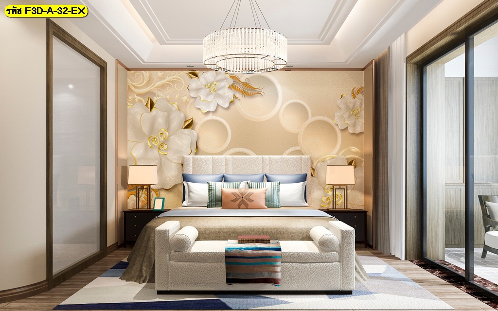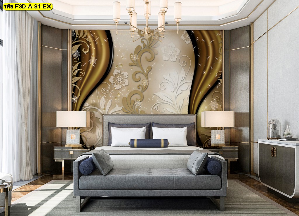 Mockup poster frame in luxury bedroom interior background, 3d render