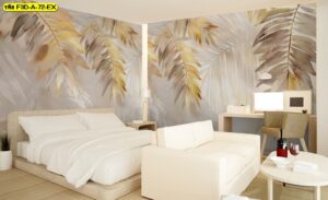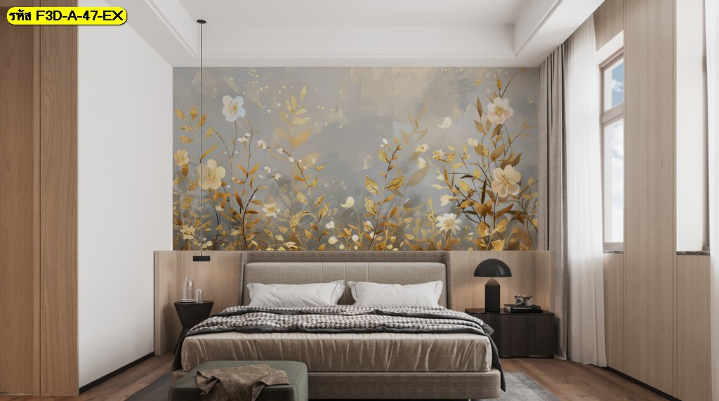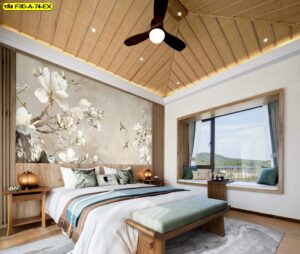 Modern light bedroom with wooden furniture in Scandinavian style. 3D rendering