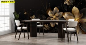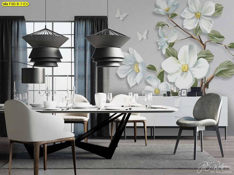 dinner room japanese style with long table and wooden chairs in room japandi.3D rendering