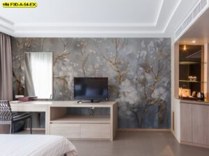 3d rendering beautiful luxury bedroom suite in hotel with tv and working table