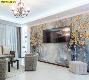 MINSK, BELARUS - January, 2019: luxure hall interior loft flat apartments with tv sofa and armchairs