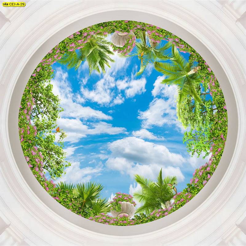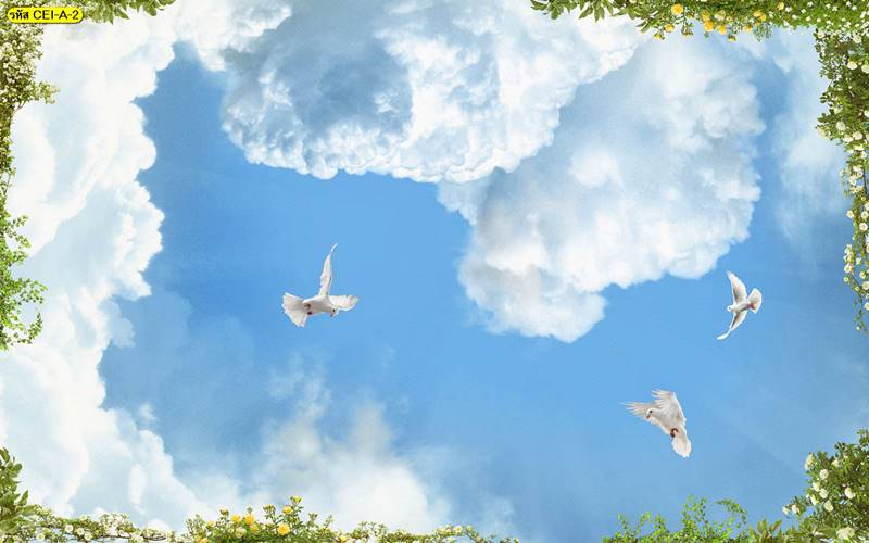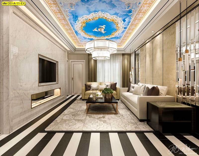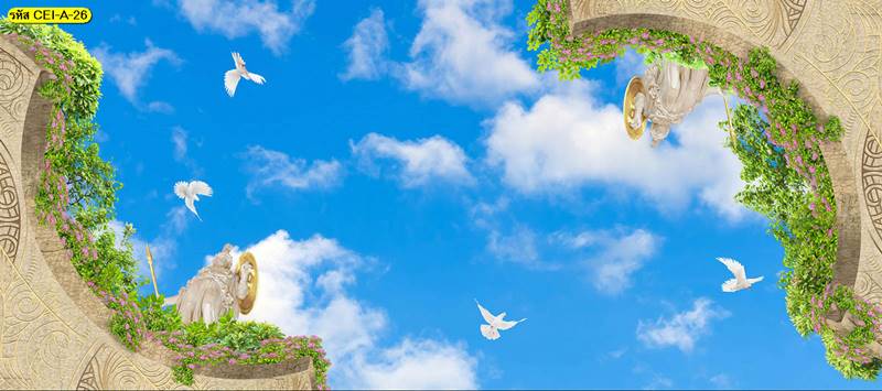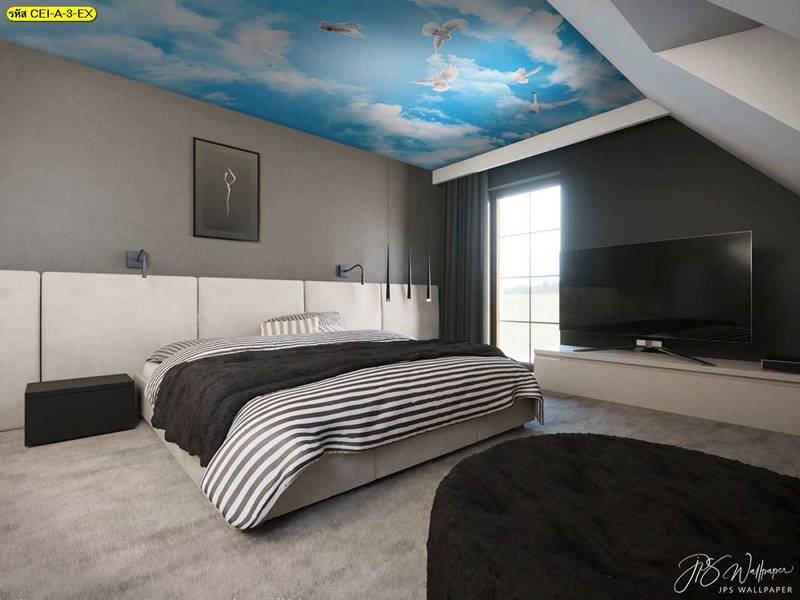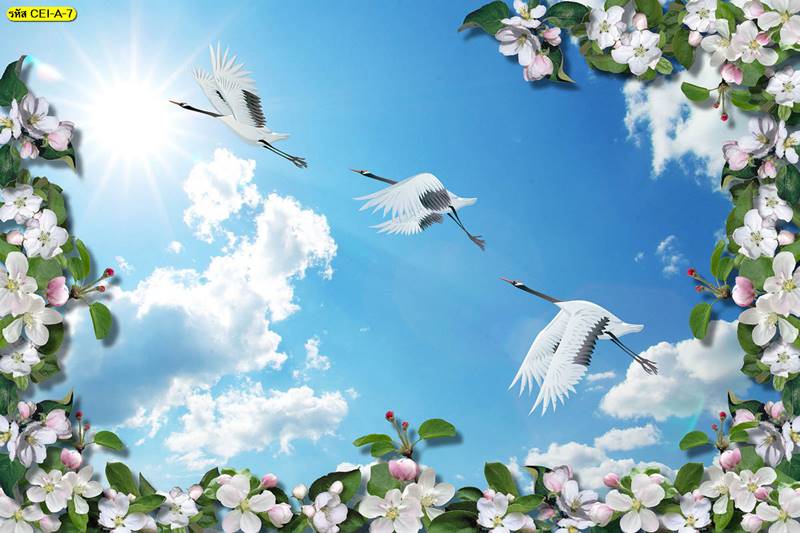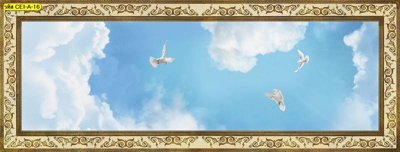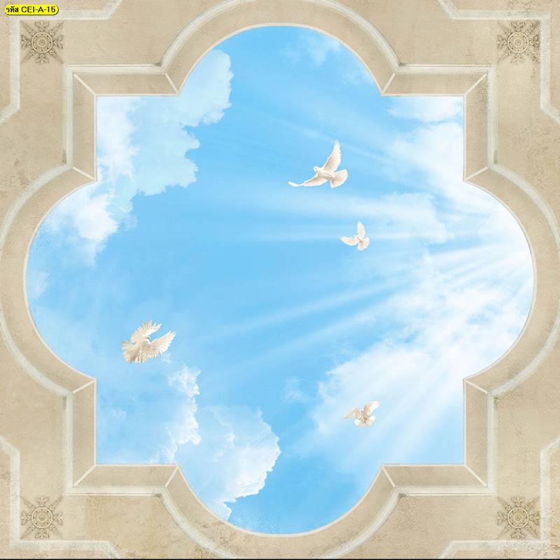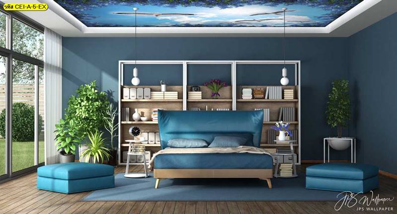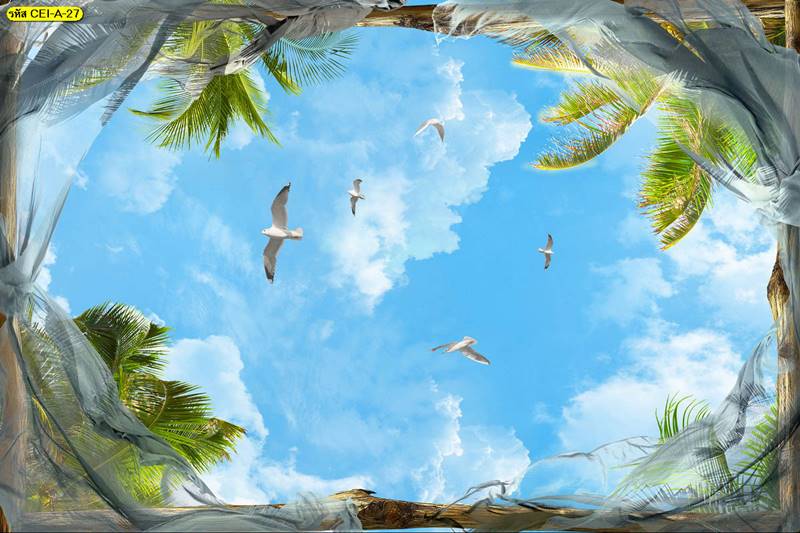 ลายฝ้าเพดาน ภาพพิมพ์ฝ้าเพดาน แต่งฝ้าห้องนั่งเล่น แต่งฝ้าห้องรับแขก ภาพฝ้าเพดาน ติดฝ้าเพดาน ลายนก ลายท้องฟ้า ลายกราฟิก