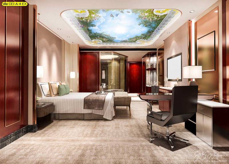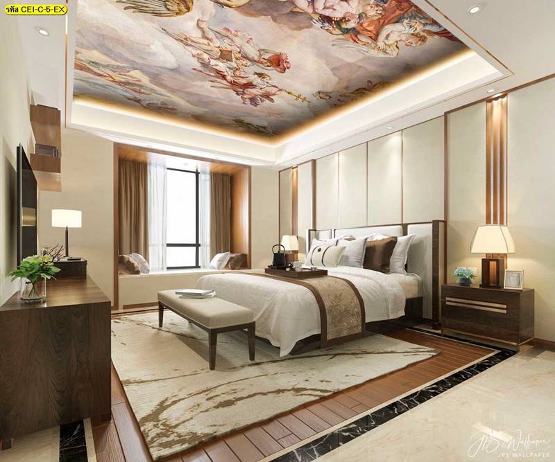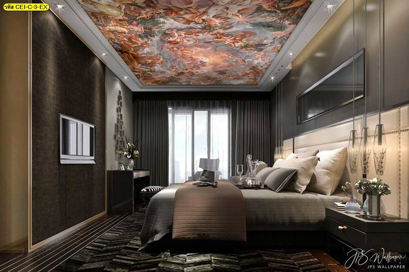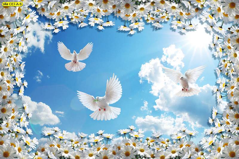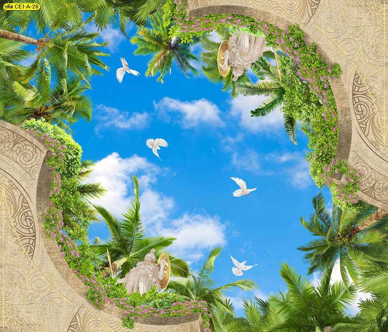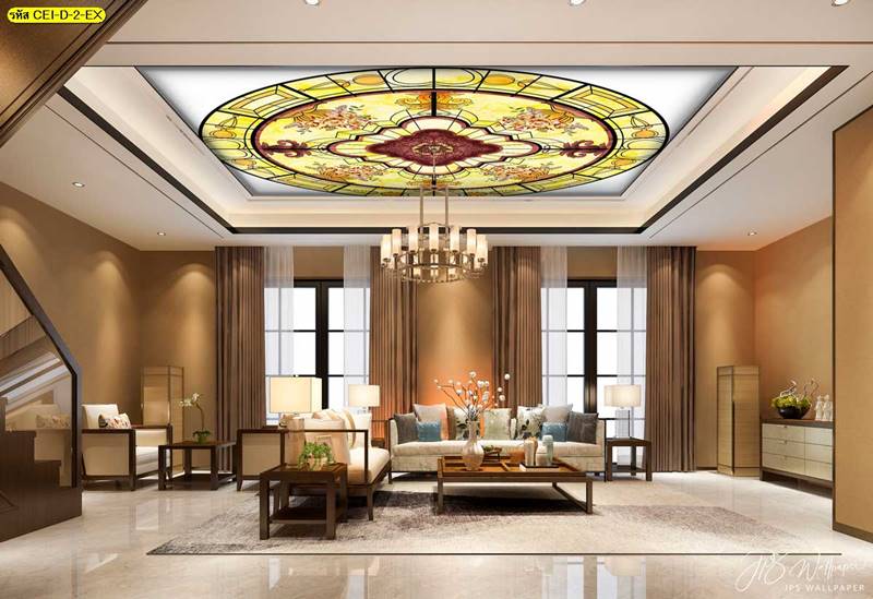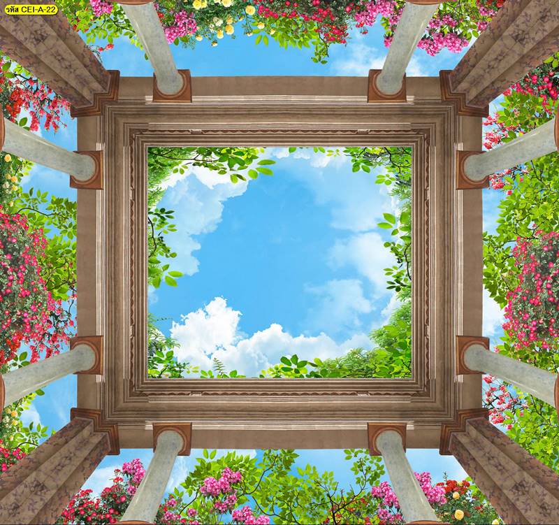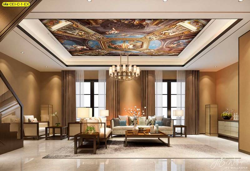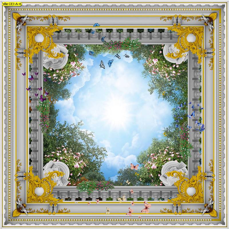 ลายฝ้าเพดาน ภาพพิมพ์ฝ้าเพดาน แต่งฝ้าห้องนั่งเล่น แต่งฝ้าห้องรับแขก ภาพฝ้าเพดาน ติดฝ้าเพดาน ลายนก ลายท้องฟ้า ลายกราฟิก