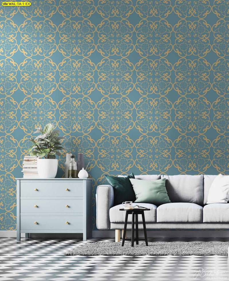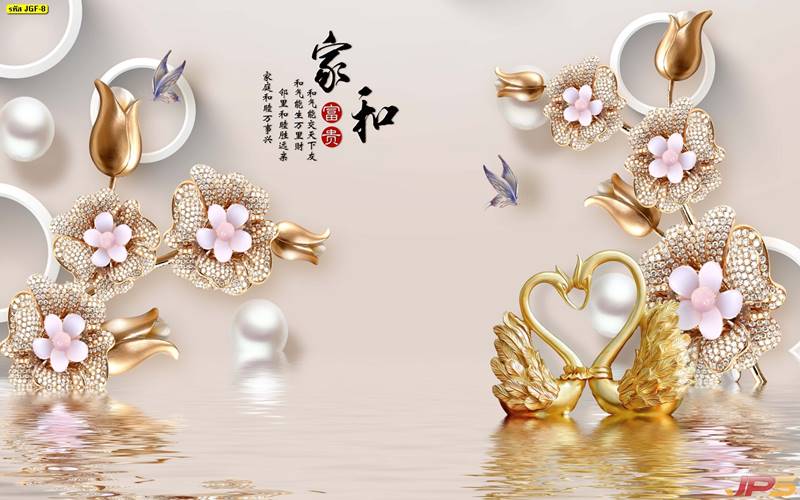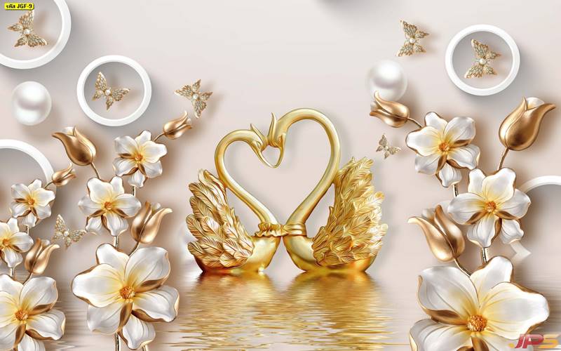 ลายหรูหรา ภาพพิมพ์หรูหรา แต่งห้องนั่งเล่น แต่งห้องรับแขก ภาพหรูหรา วอลเปเปอร์หรูหรา สีทอง หงษ์ทอง ลายสีทอง