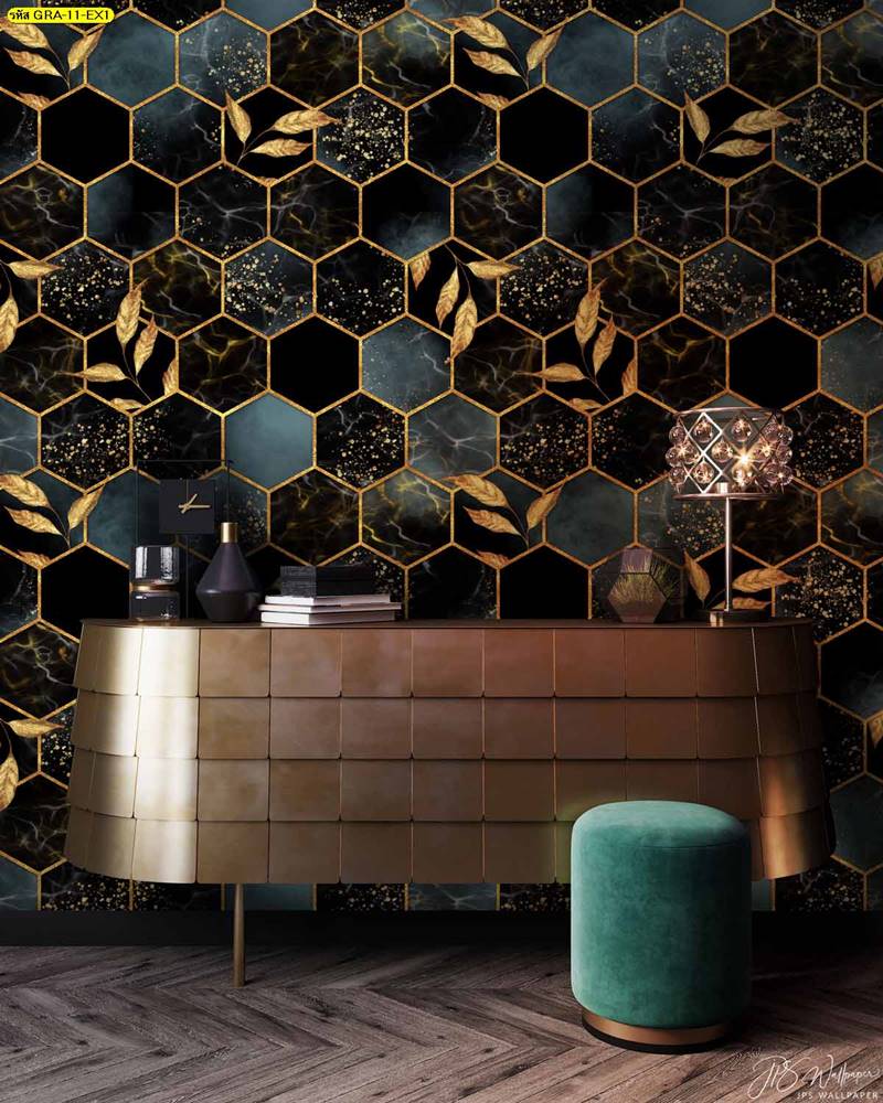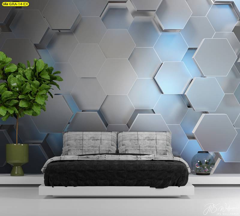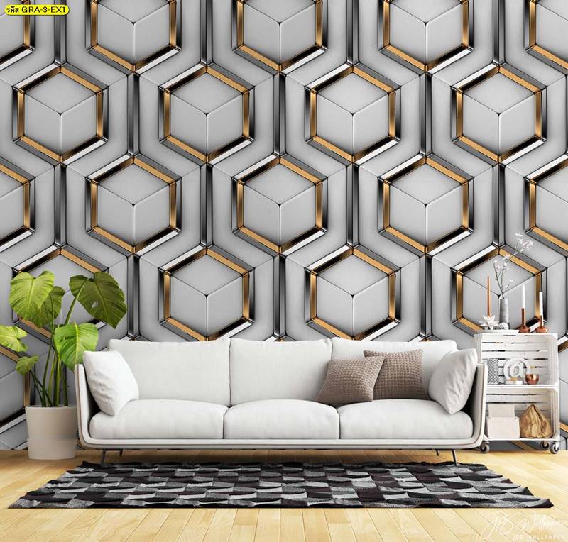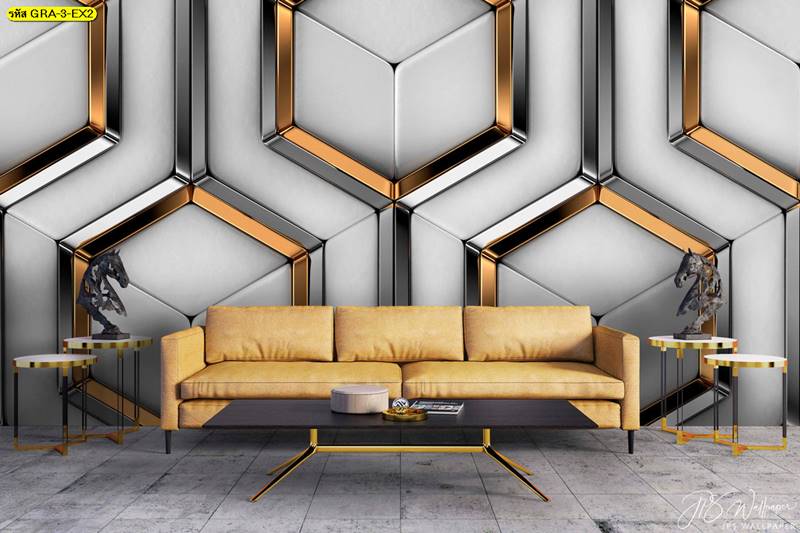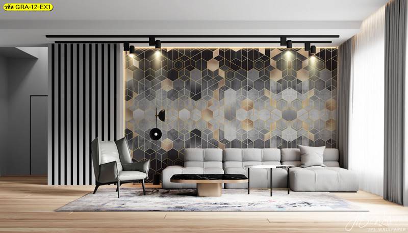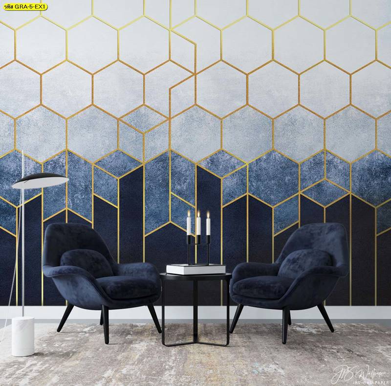 ลายกราฟิก ภาพพิมพ์กราฟิก วอลเปเปอร์กราฟิก แต่งห้องนั่งเล่น แต่งห้องรับแขก ลายหกเหลี่ยม ทันสมัย ลายรวงผึ้ง