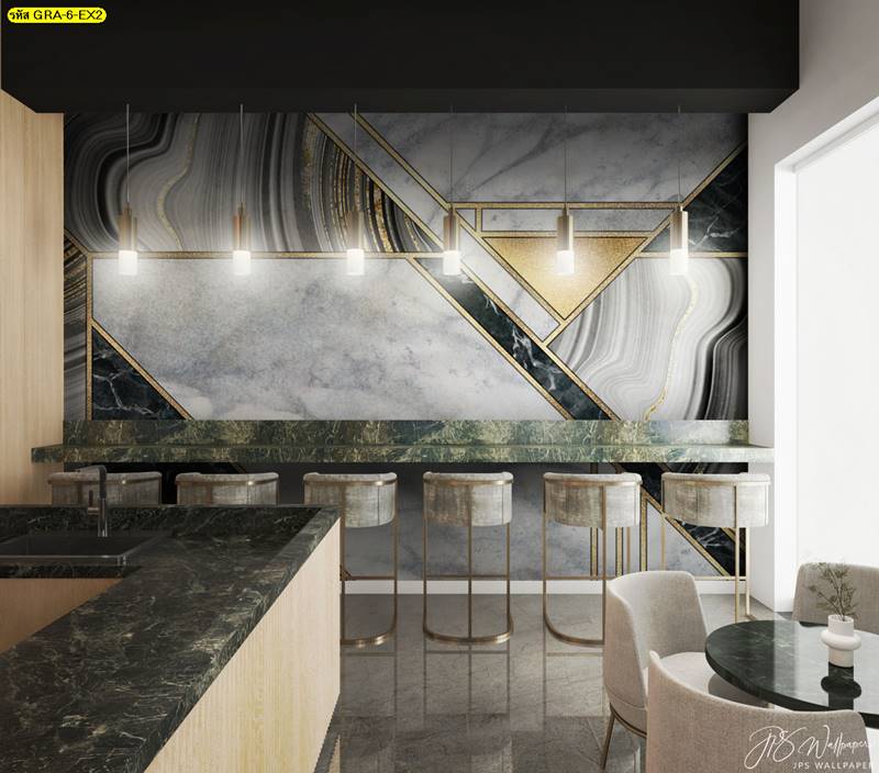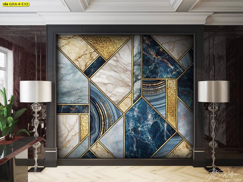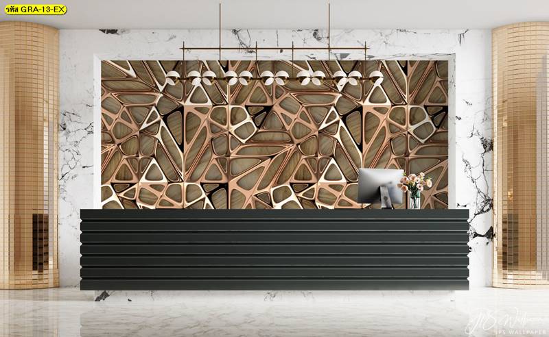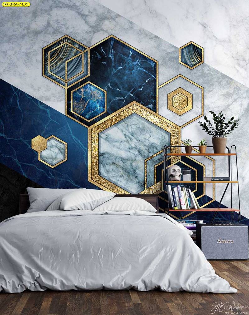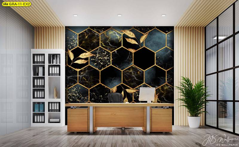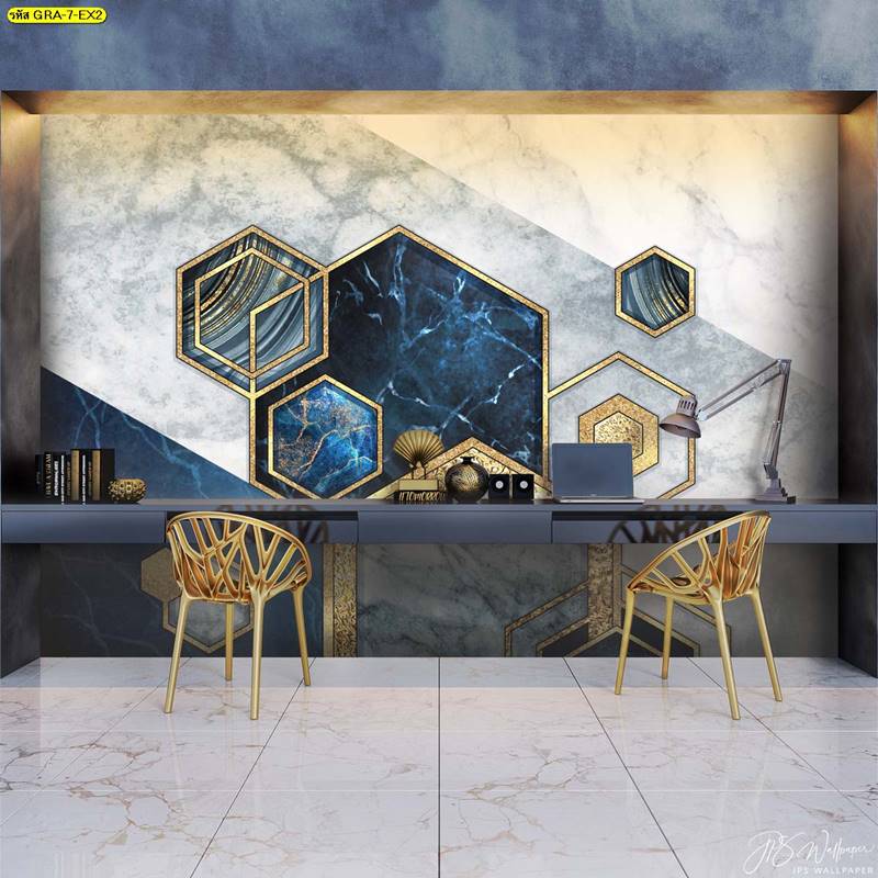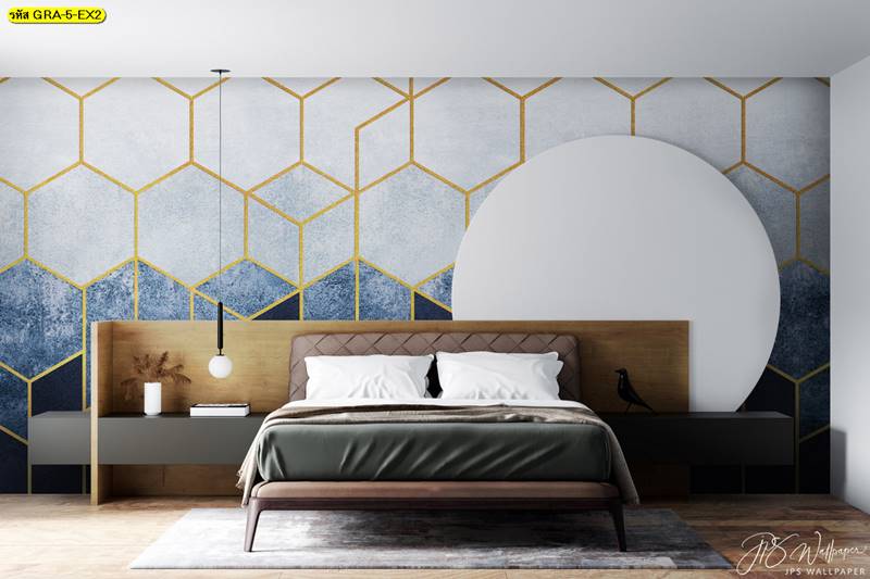 ลายกราฟิก ภาพพิมพ์กราฟิก วอลเปเปอร์กราฟิก แต่งห้องนั่งเล่น แต่งห้องรับแขก ลายหกเหลี่ยม ทันสมัย ลายรวงผึ้ง