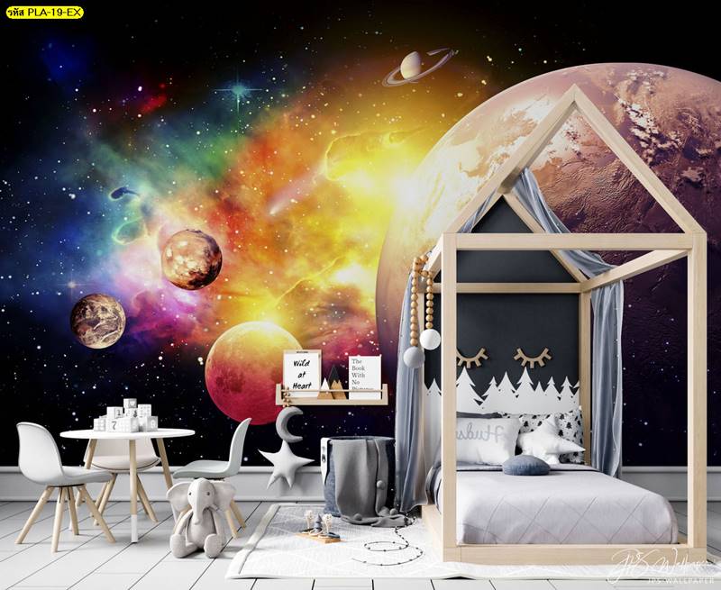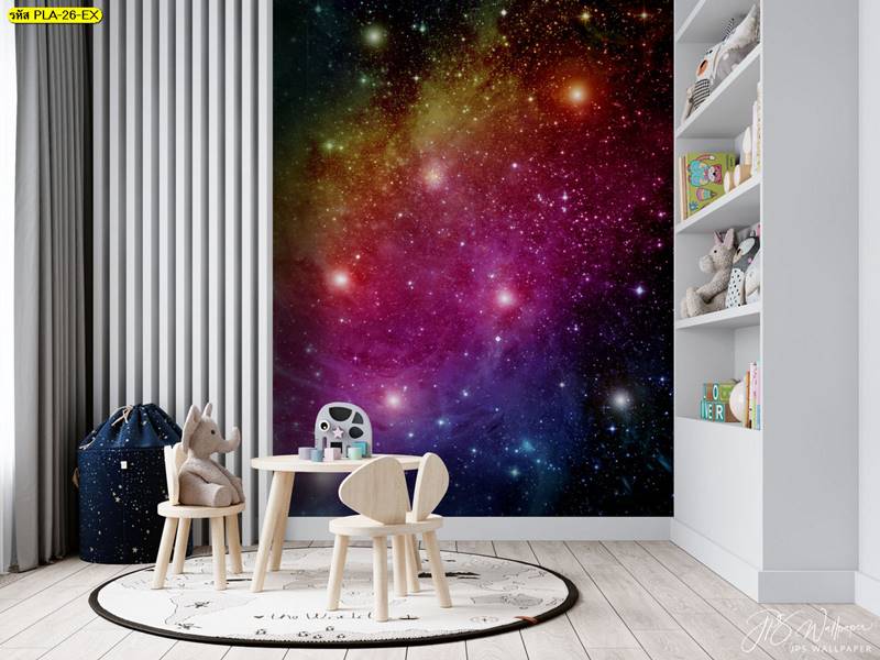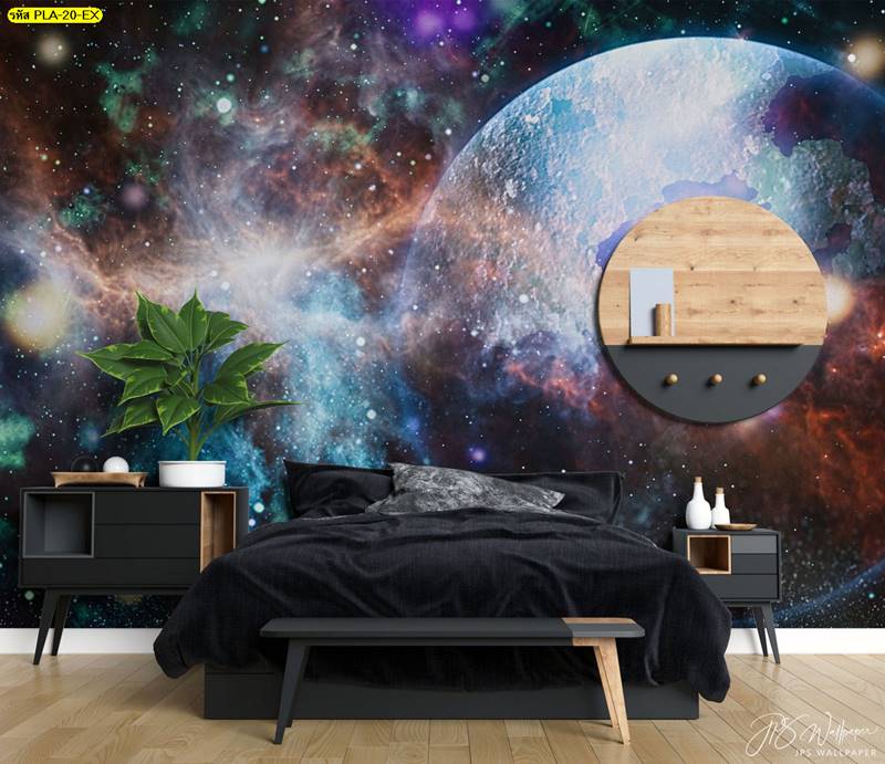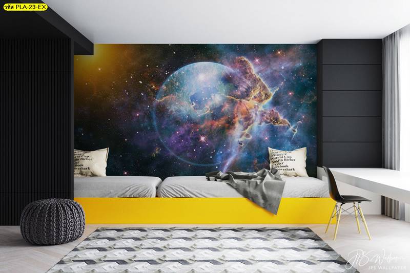 ลายอวกาศ ภาพพิมพ์อวกาศ แต่งห้องนั่งเล่น แต่งห้องนอน อวกาศ วอลเปเปอร์อวกาศ กาแล็กซี่ ดวงดาว จักรวาล