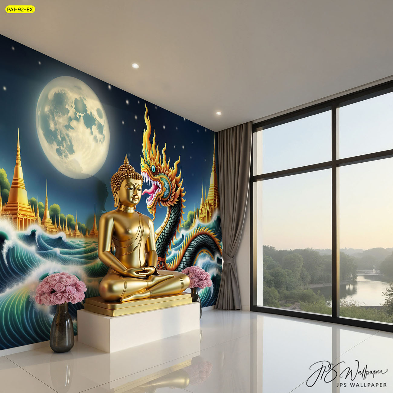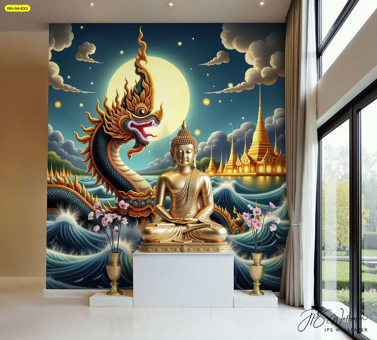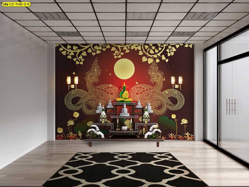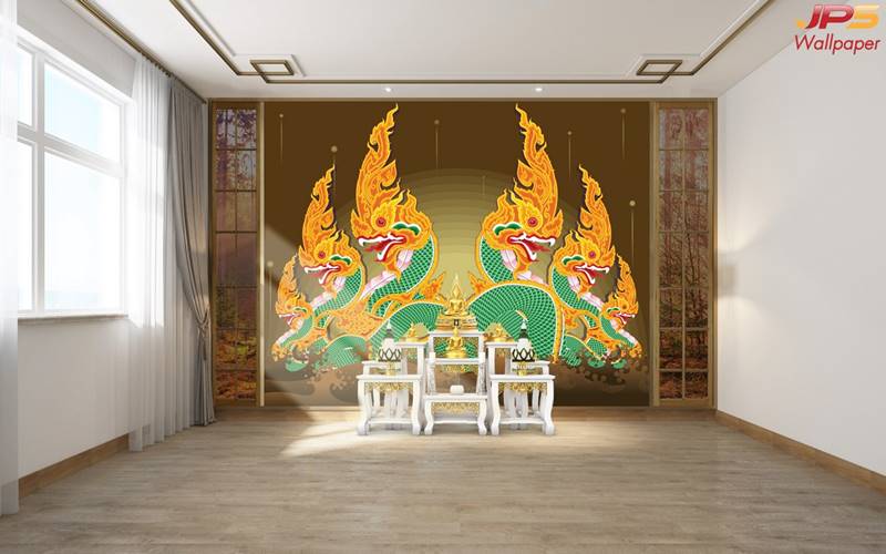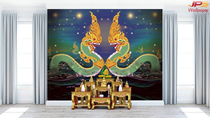 ห้องพระ ตกแต่งห้องพระ ลายพญานาค ภาพพิมพ์ห้องพระ วอลเปเปอร์ติดห้องพระ ฉากหลังติดห้องพระ วอลเปเปอร์ห้องพระสวยๆ วอลเปเปอร์พญานาค ภาพติดผนังห้องพระ วอลเปเปอร์ห้องพระ ลายต้นโพธิ์